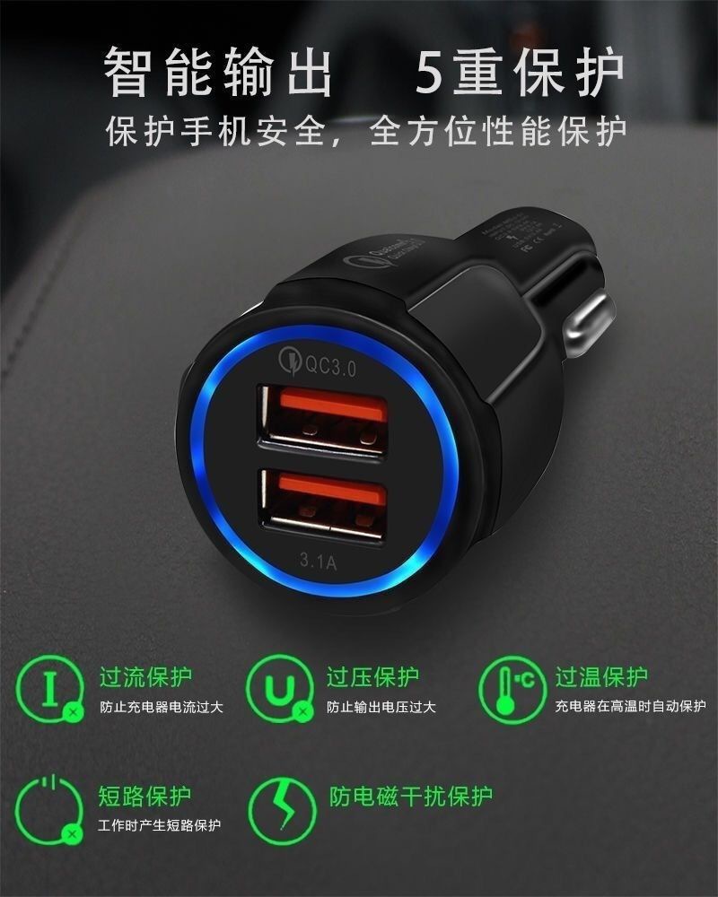 Автомобильное зарядное устройство для боулинга 3.1A и QC3.0 с двумя USB-портом для зарядки основных моделей