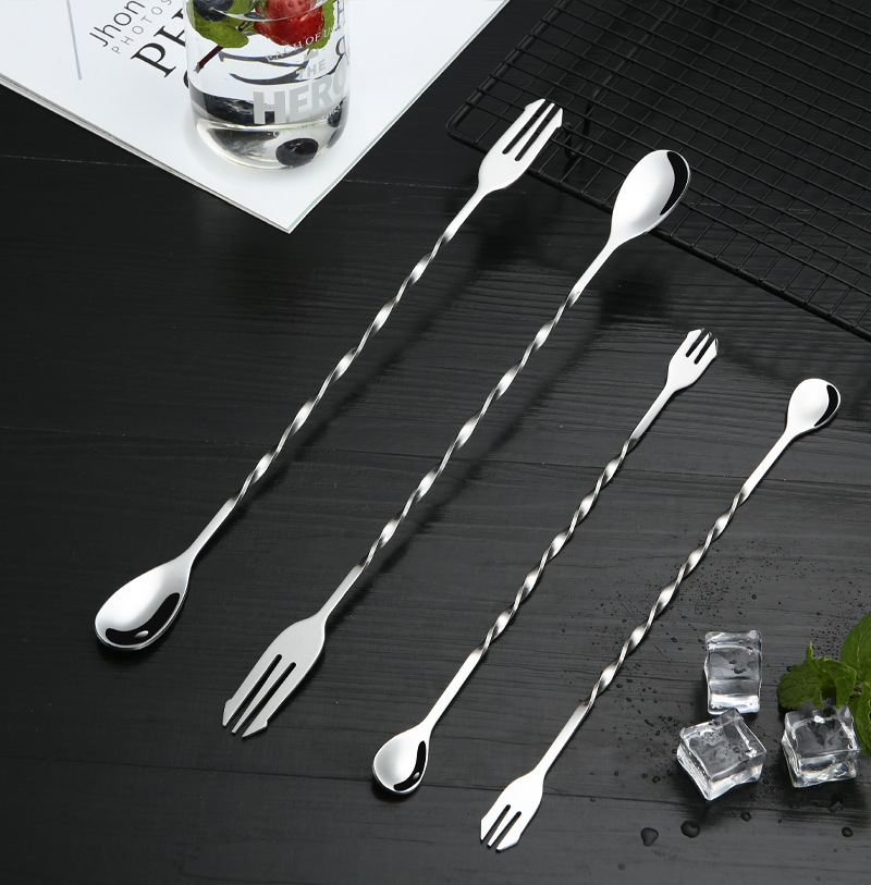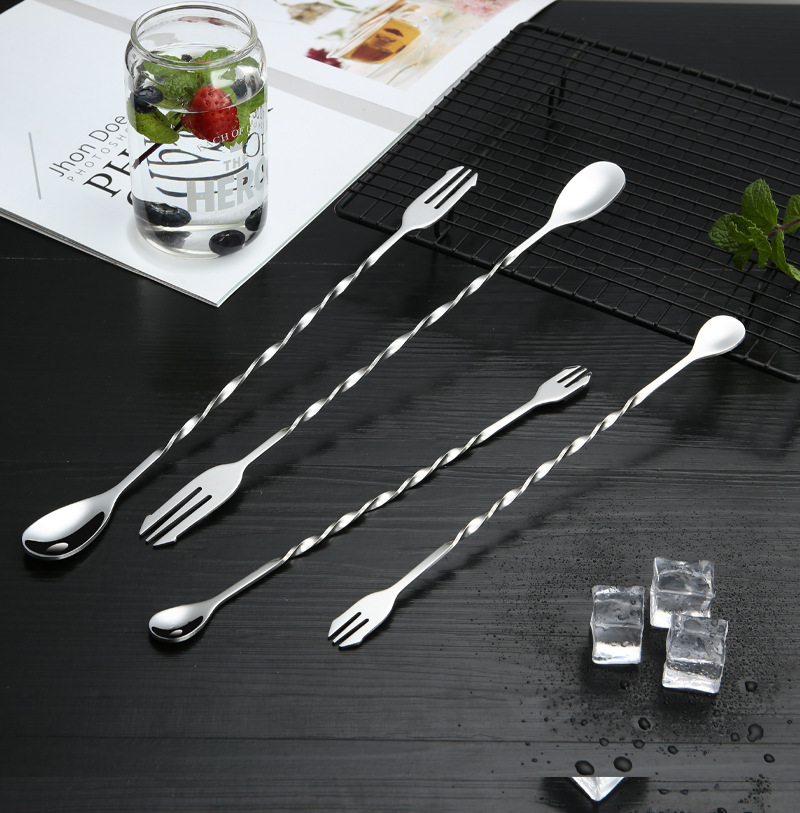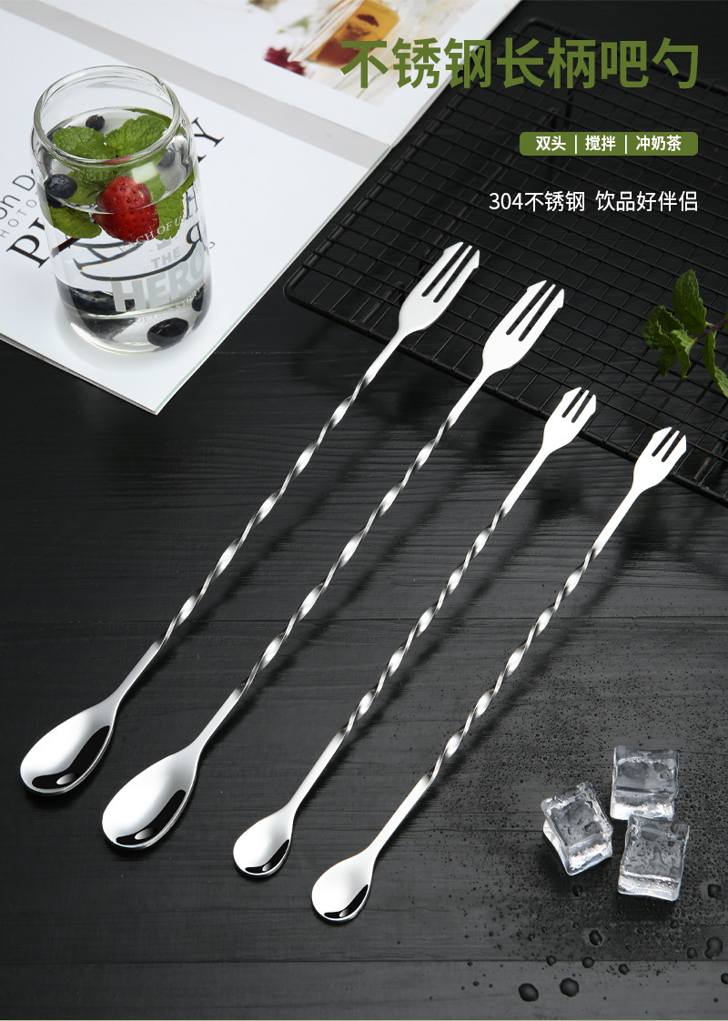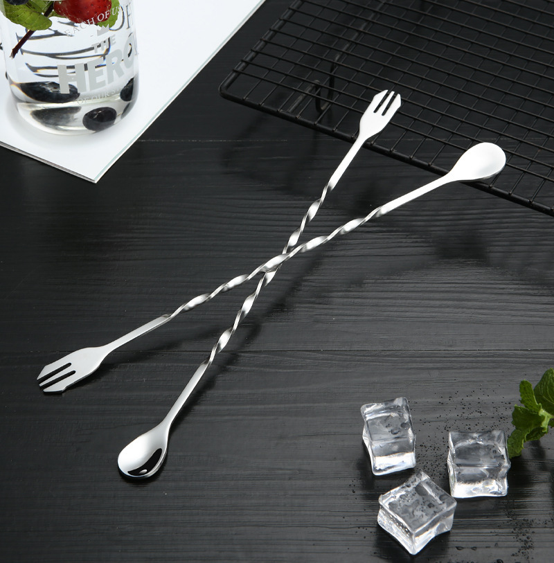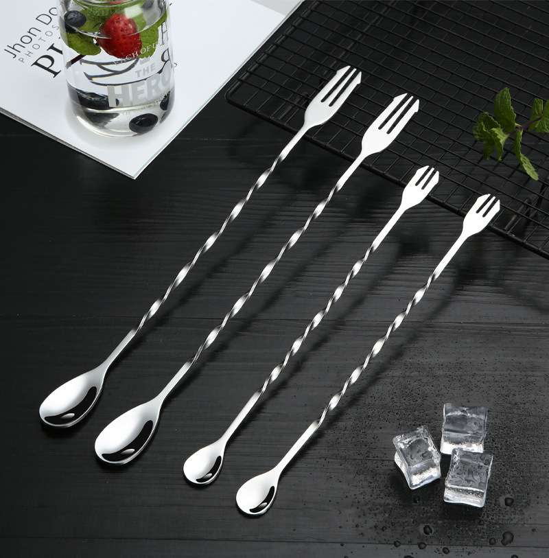 Ложка для смешивания с длинной ручкой из нержавеющей стали Двойная барная ложка Бар Инструмент для смешивания коктейлей Длинная ручка Ложка для смешивания