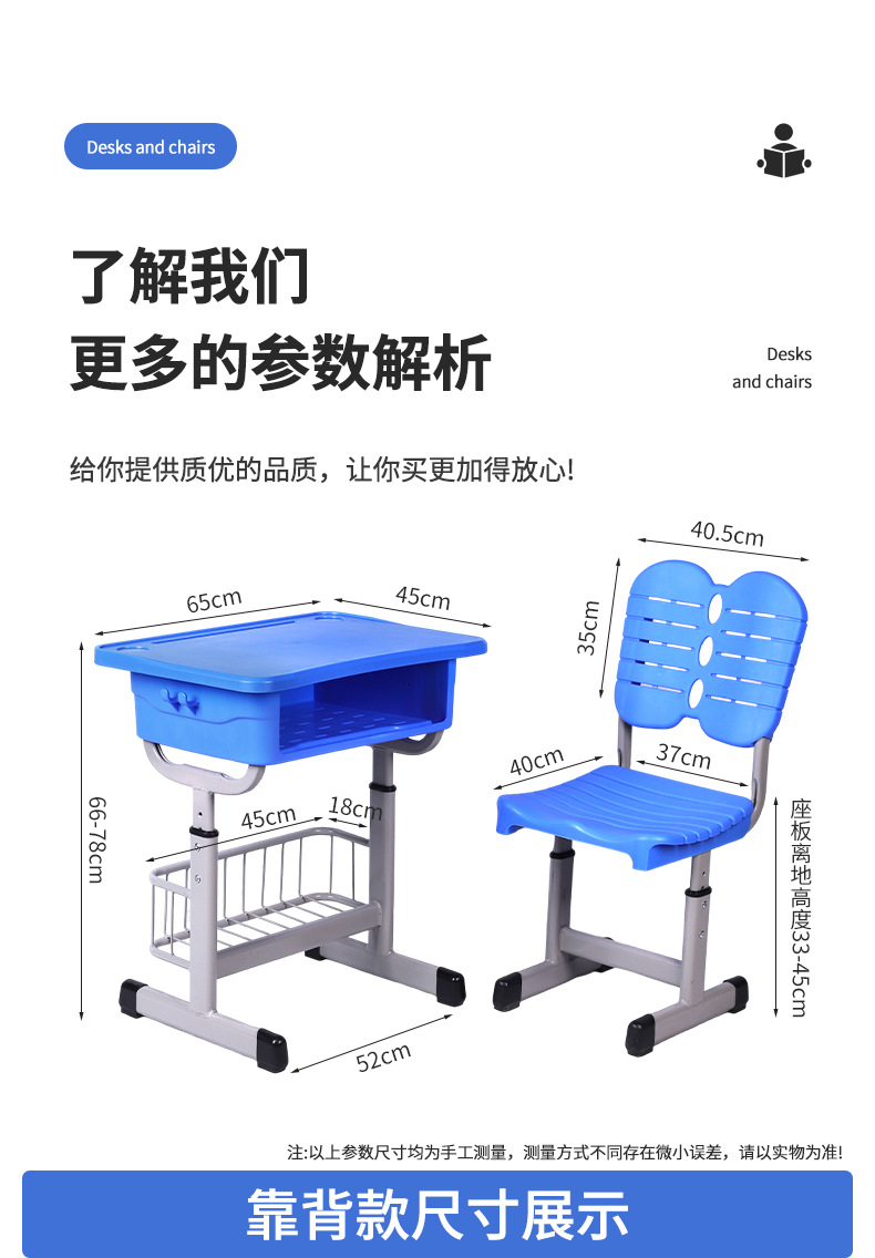 购买须知: 厂家直供课桌椅均是批发价出售 不含运费,不包邮!!!各省市区县运费不一样,无法设置运费,详情运费请咨询客服。课桌椅形状特殊不打包装,发物流有划痕掉漆很难避免,敬请谅解!