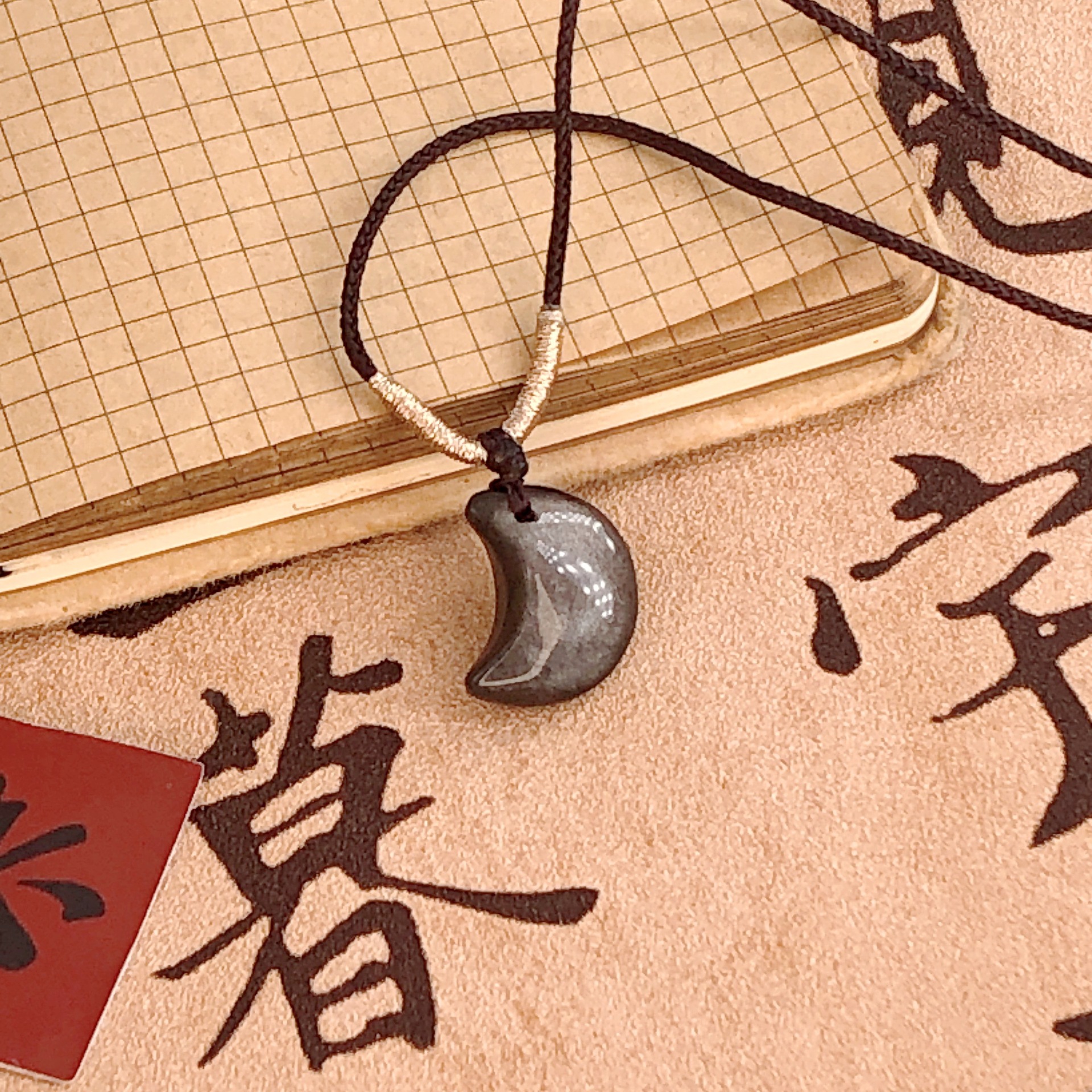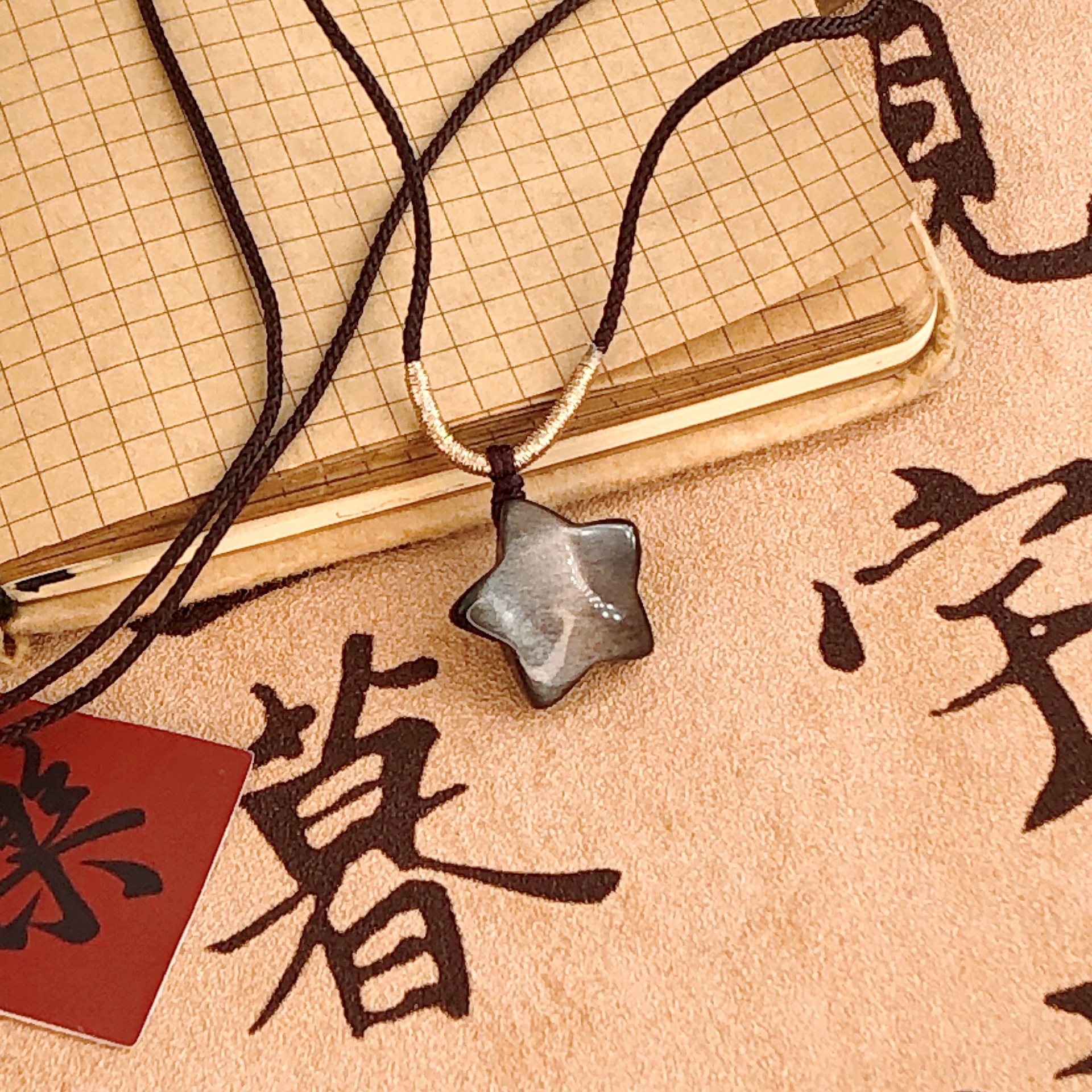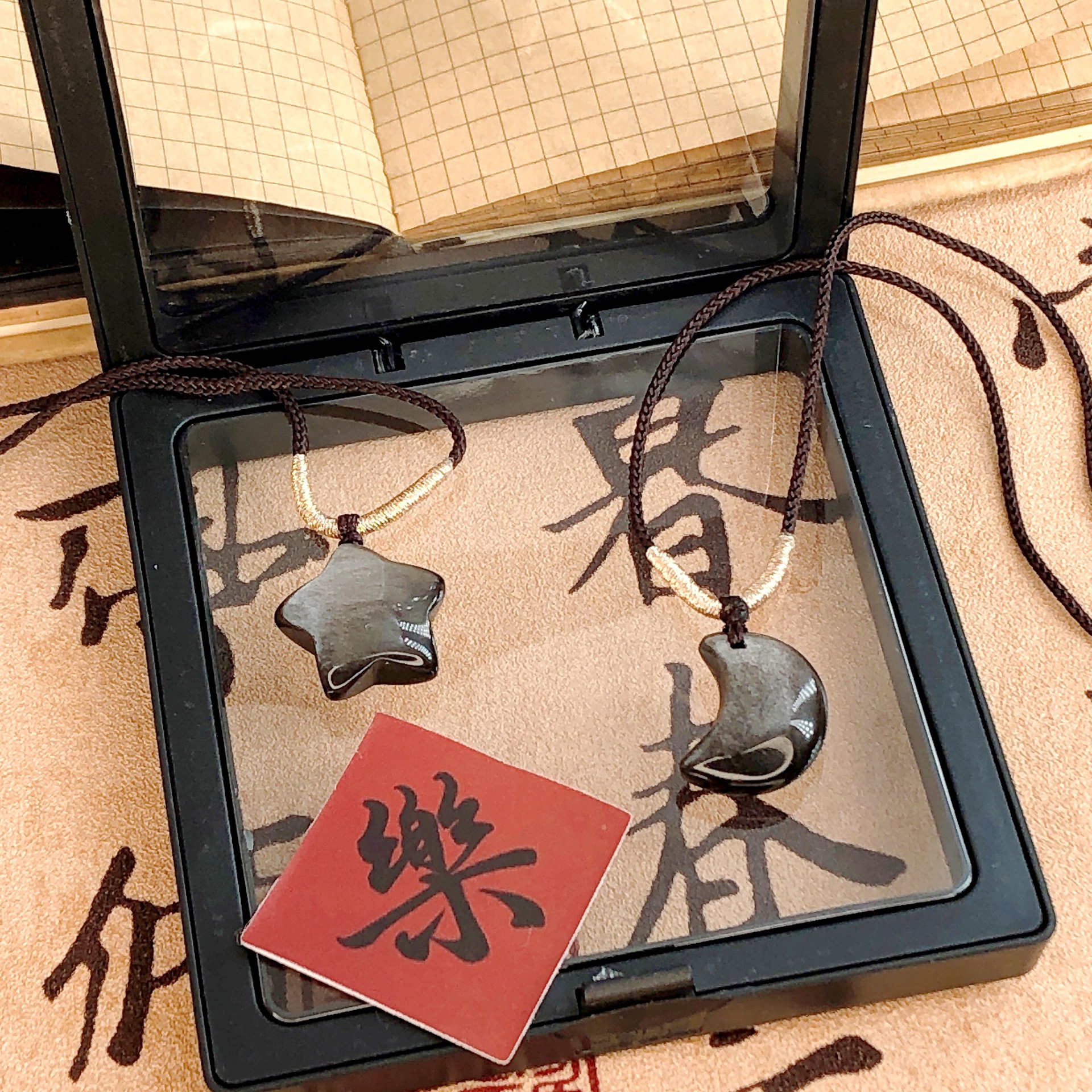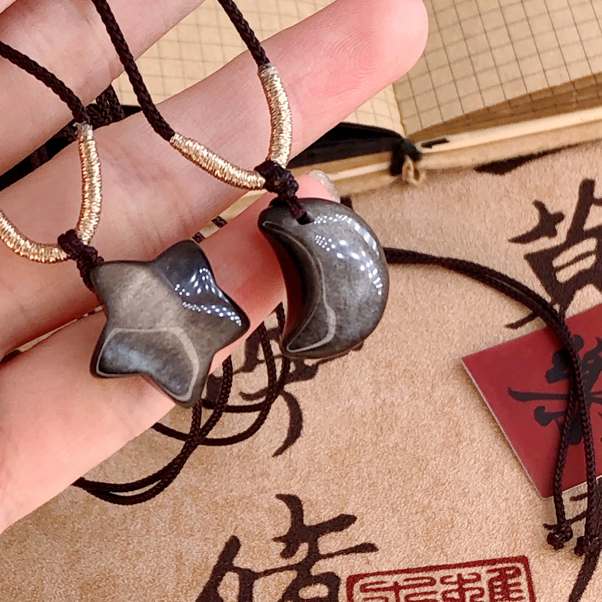 Натуральное серебро обсидиан звезда луна кулон цепочка на ключицу Нефритовое ожерелье обсидиан винтажный парный кулон регулируемый