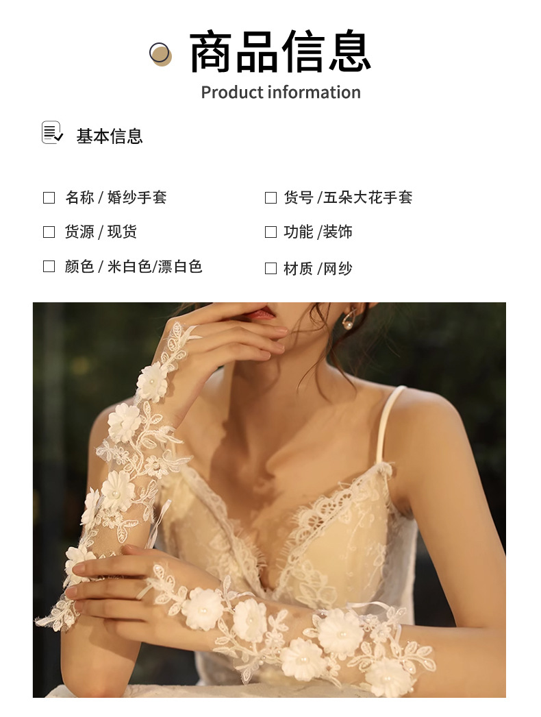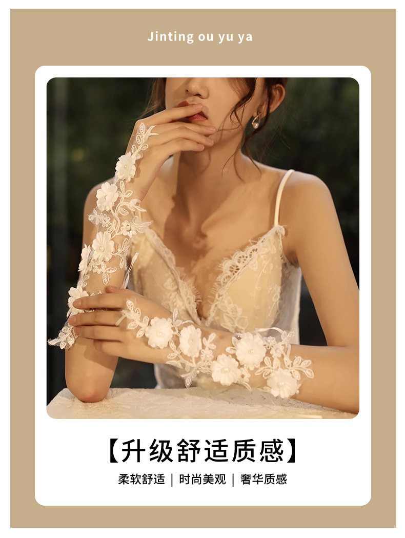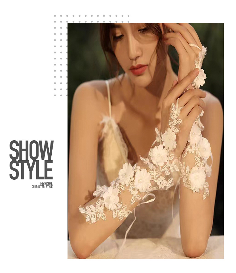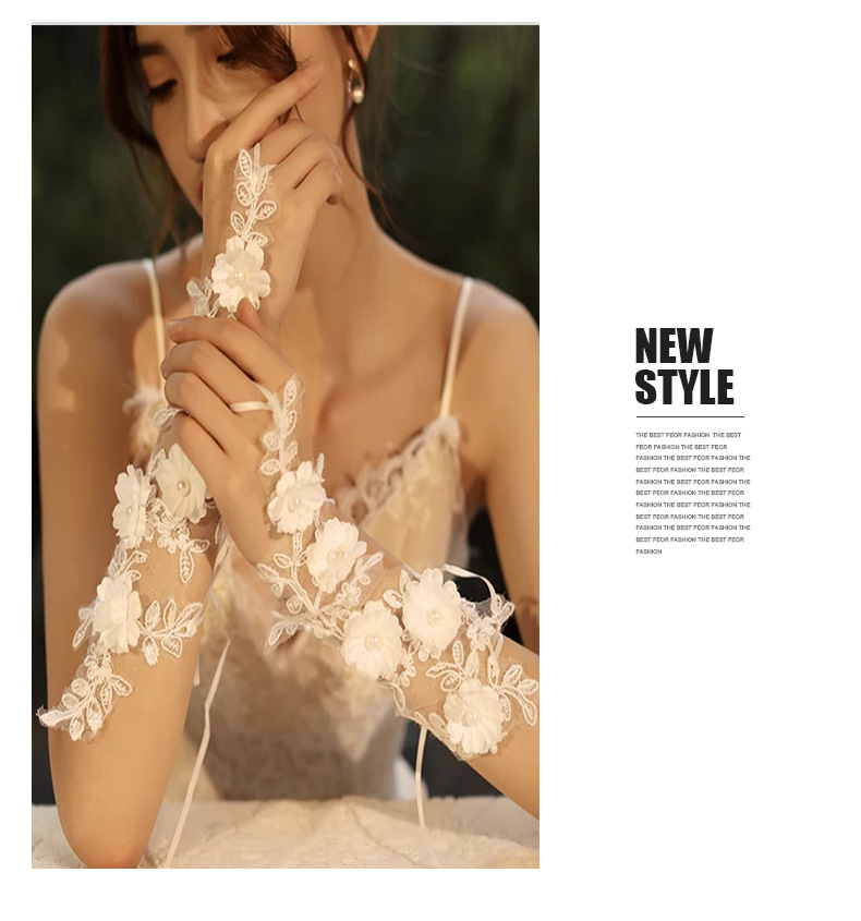 Новые свадебные перчатки 2025 года, белые, с цветочным узором и жемчугом, для фотостудии, без пальцев, с защитой от солнца, для путешествий и фотосъемки