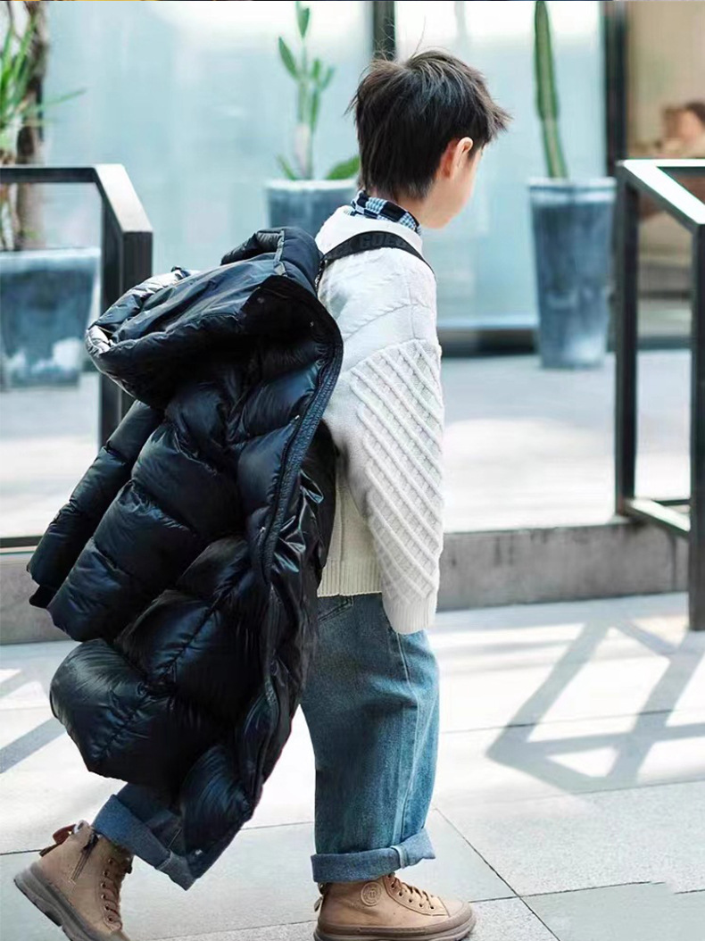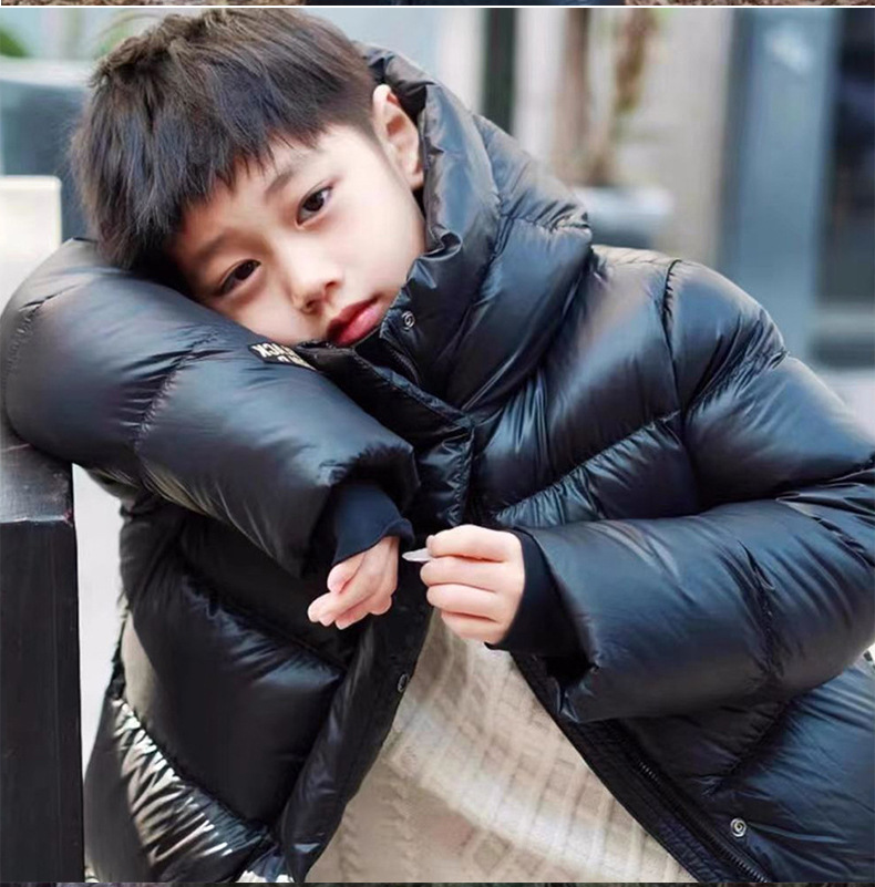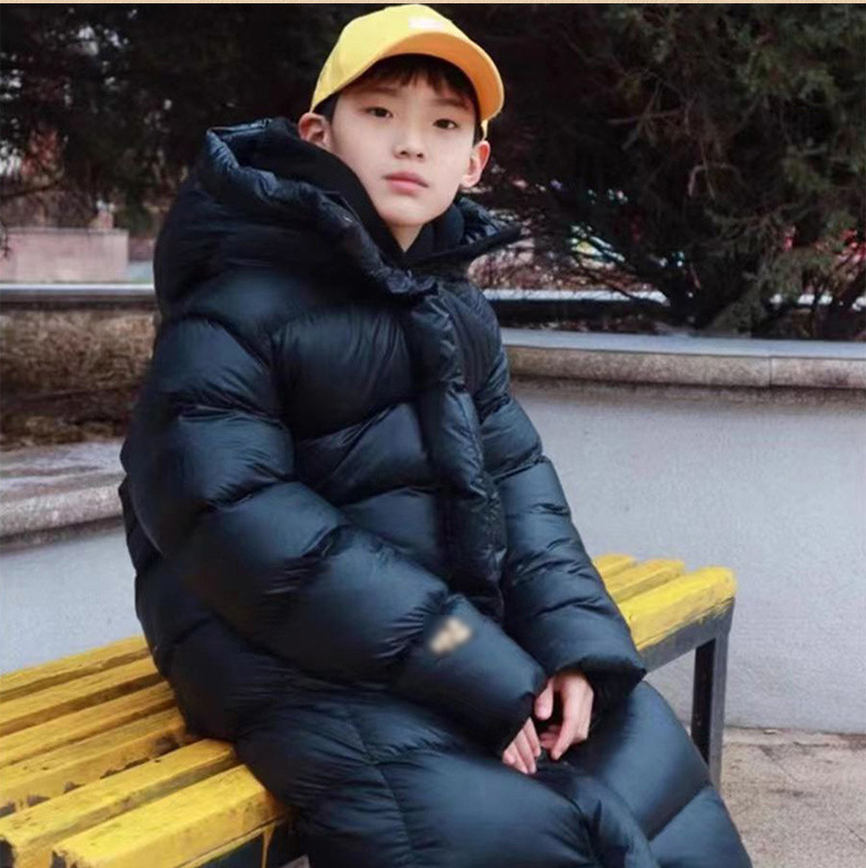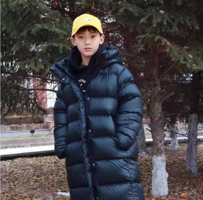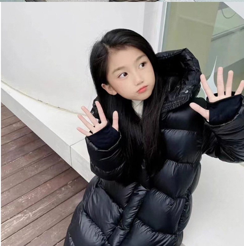 Новая детская куртка средней длины с капюшоном, серый утиный пух, детская одежда в корейском стиле, хлопковая куртка для мальчиков и девочек, одинаковый стиль.