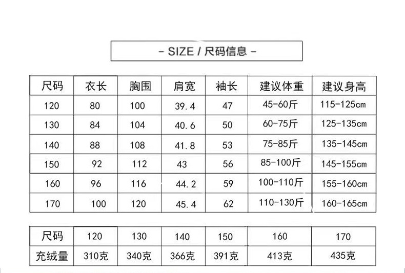 110cm; 120cm; 130cm; 140cm; 150cm; 160cm; 170cm