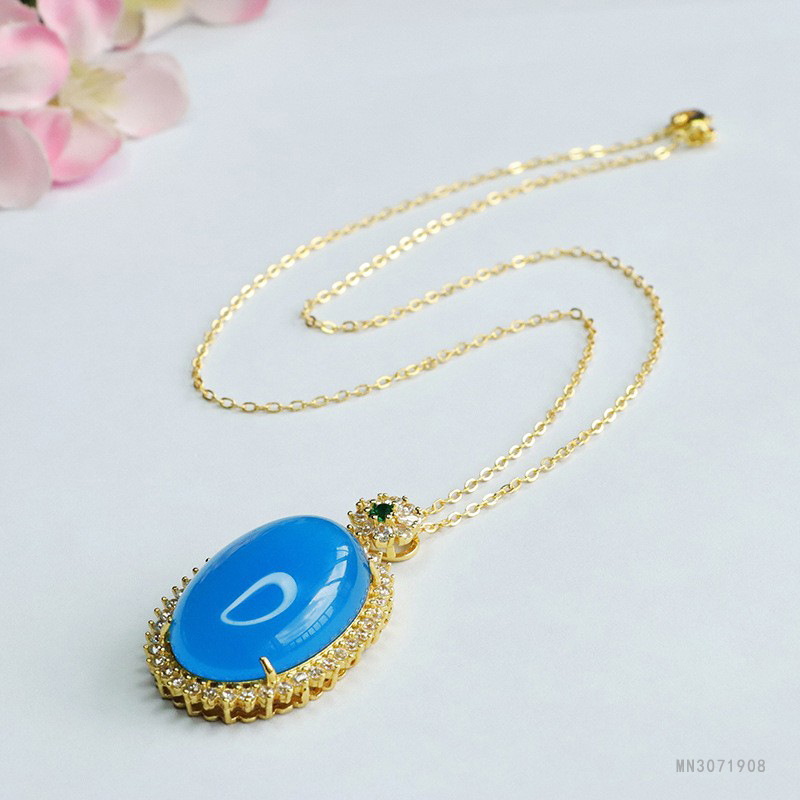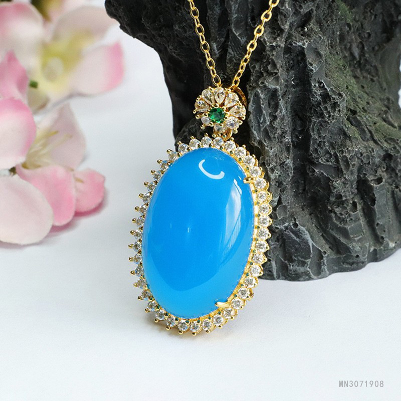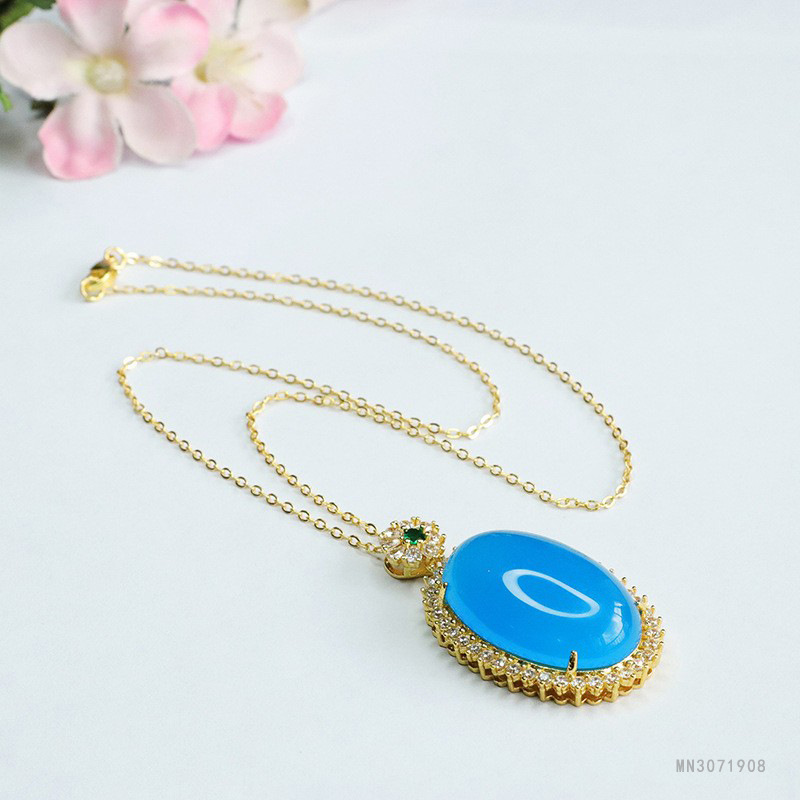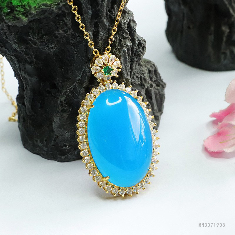 Голубой халцедон голубиное яйцо Подвеска (не с цепочкой) MN3071908; Голубой халцедон голубиное яйцо Подвеска (с золотой цепочкой) MN3071908