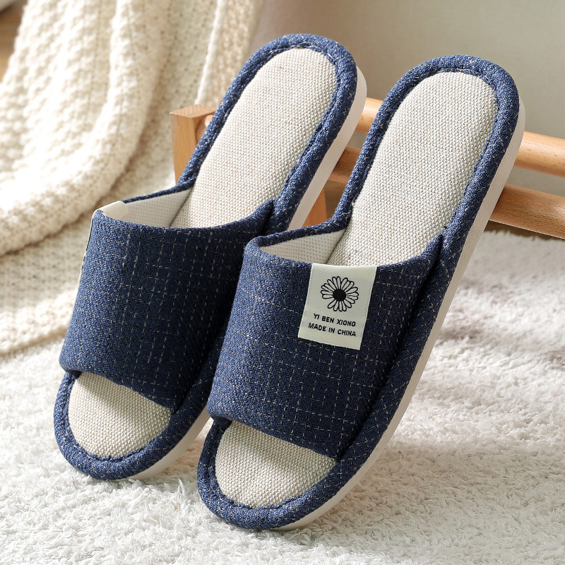 Льняные тапочки, мужские четырехсезонные домашние бесшумный, впитывающий пот, износостойкие весенне-осенние хлопковые льняные тапочки, мужские