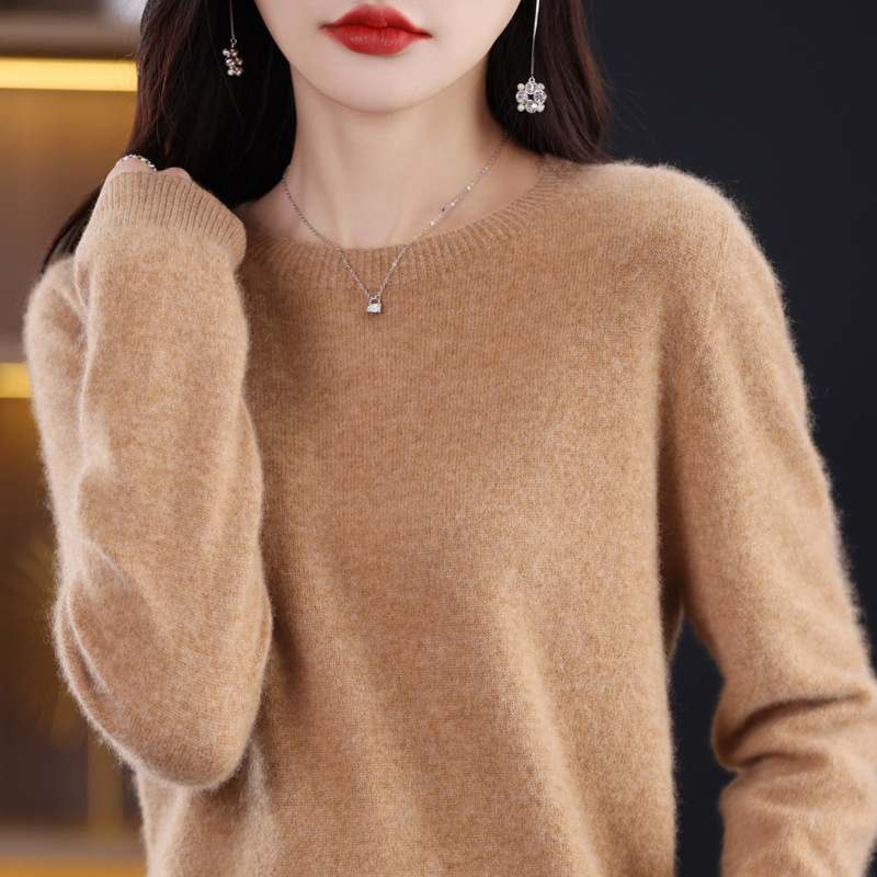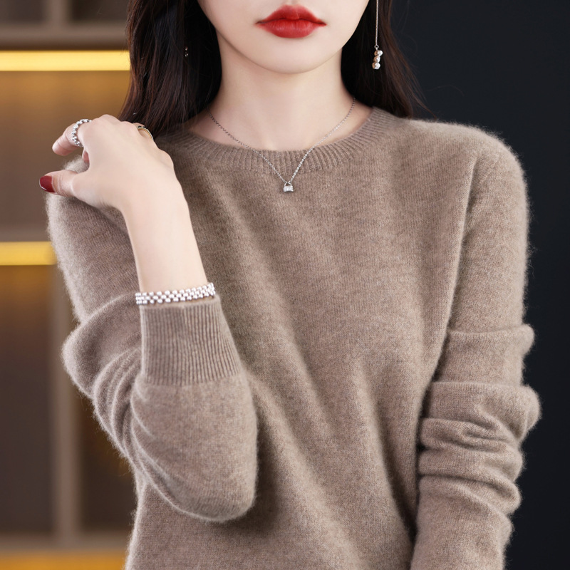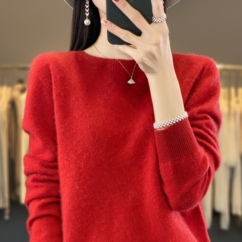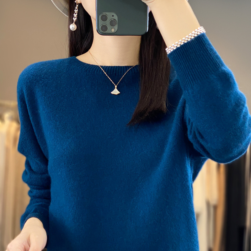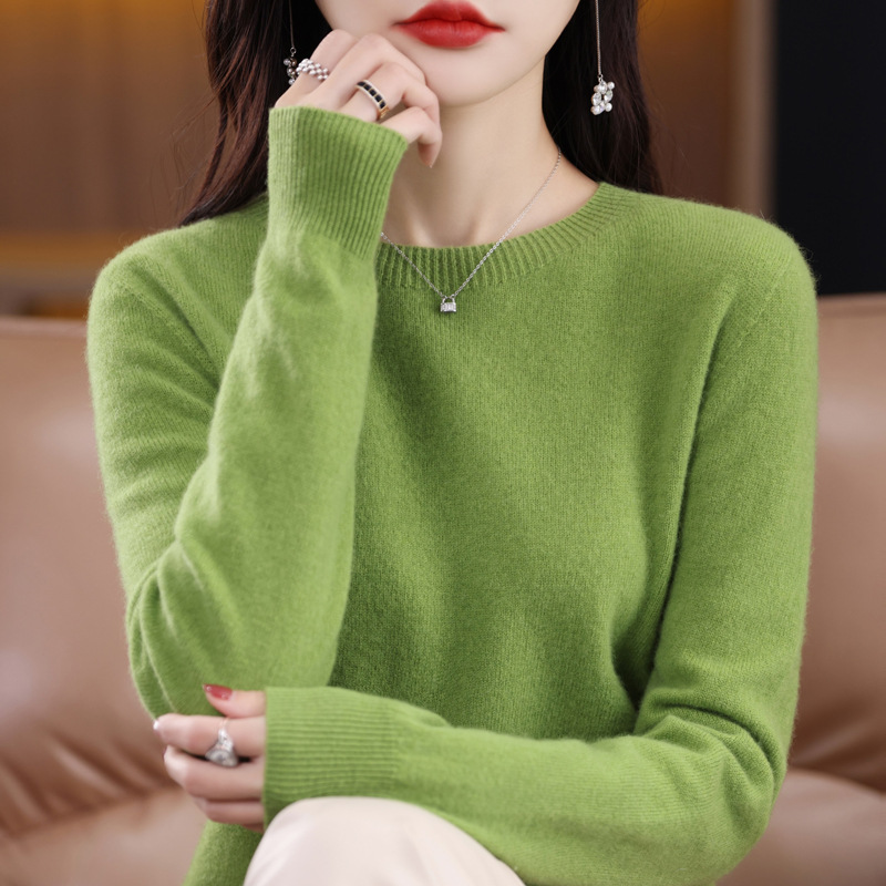 Первая линия одежды 100 чистый шерстяной вязаный свитер женский V-образный пуловер свободный нижний свитер осень зима новый сплошной свитер
