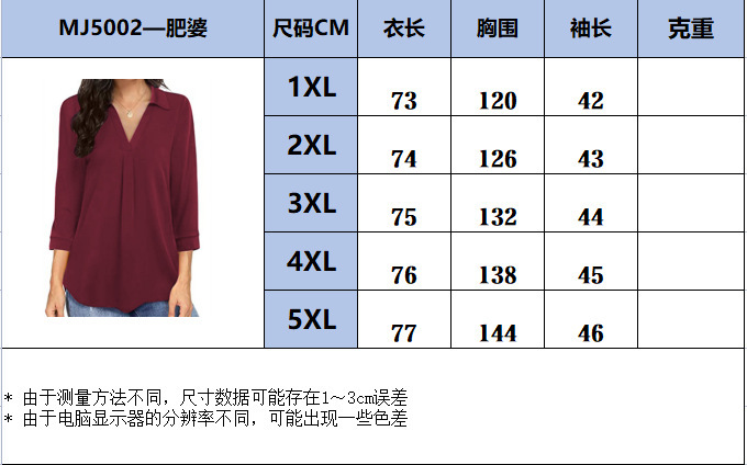 2025 трансграничный Amazon, новый европейский и американский шифоновый женский пуловер большого размера, свободная рубашка с v-образным вырезом и рукавами три четверти, топ