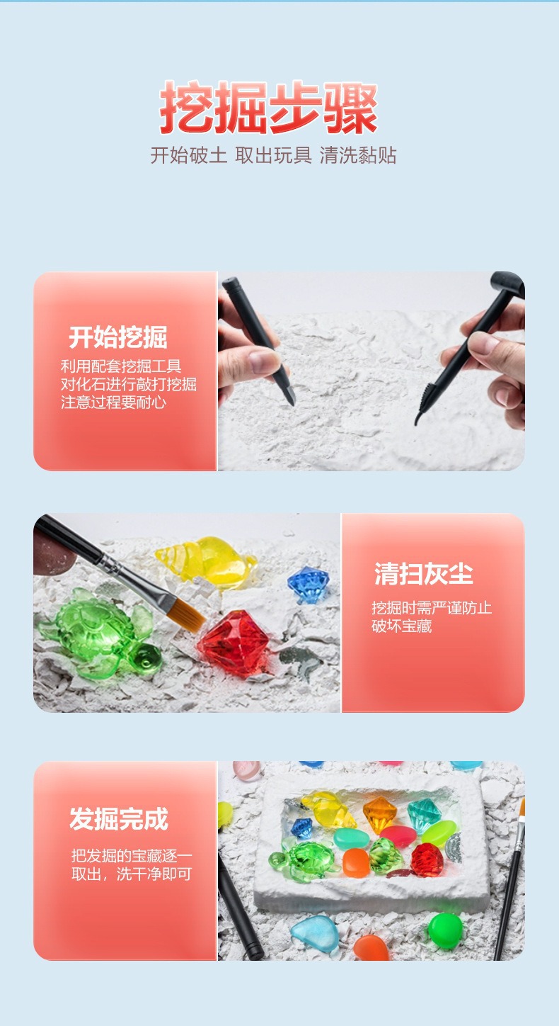 1.边缘磕碰剐蹭不影响正常挖掘的不予处理,考古产品轻微磕碰不影响孩子体验的不做赔付