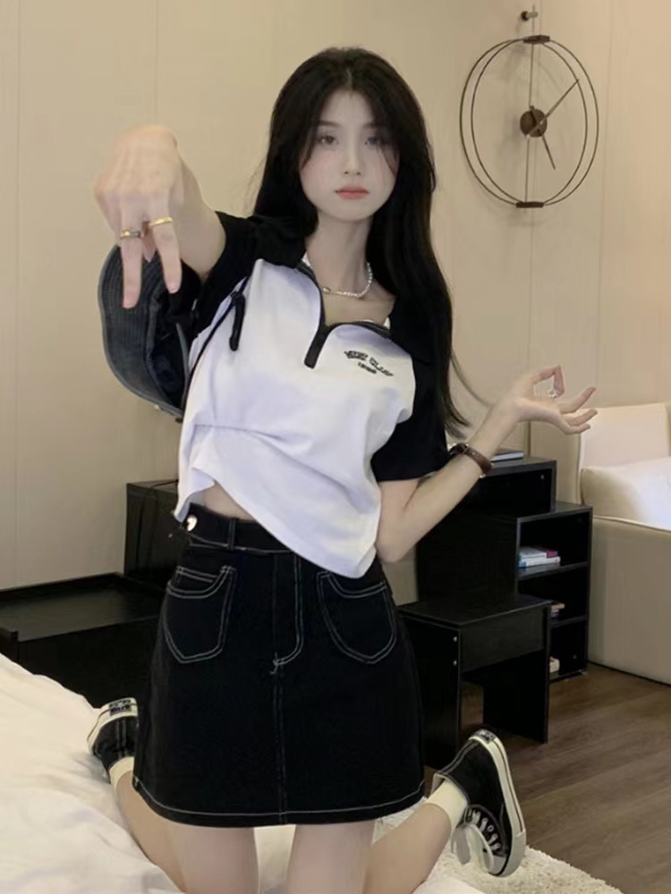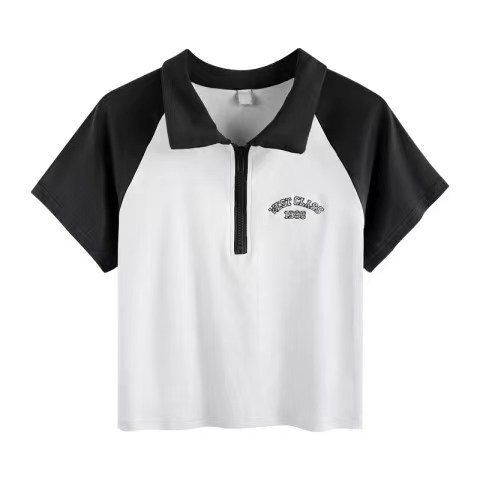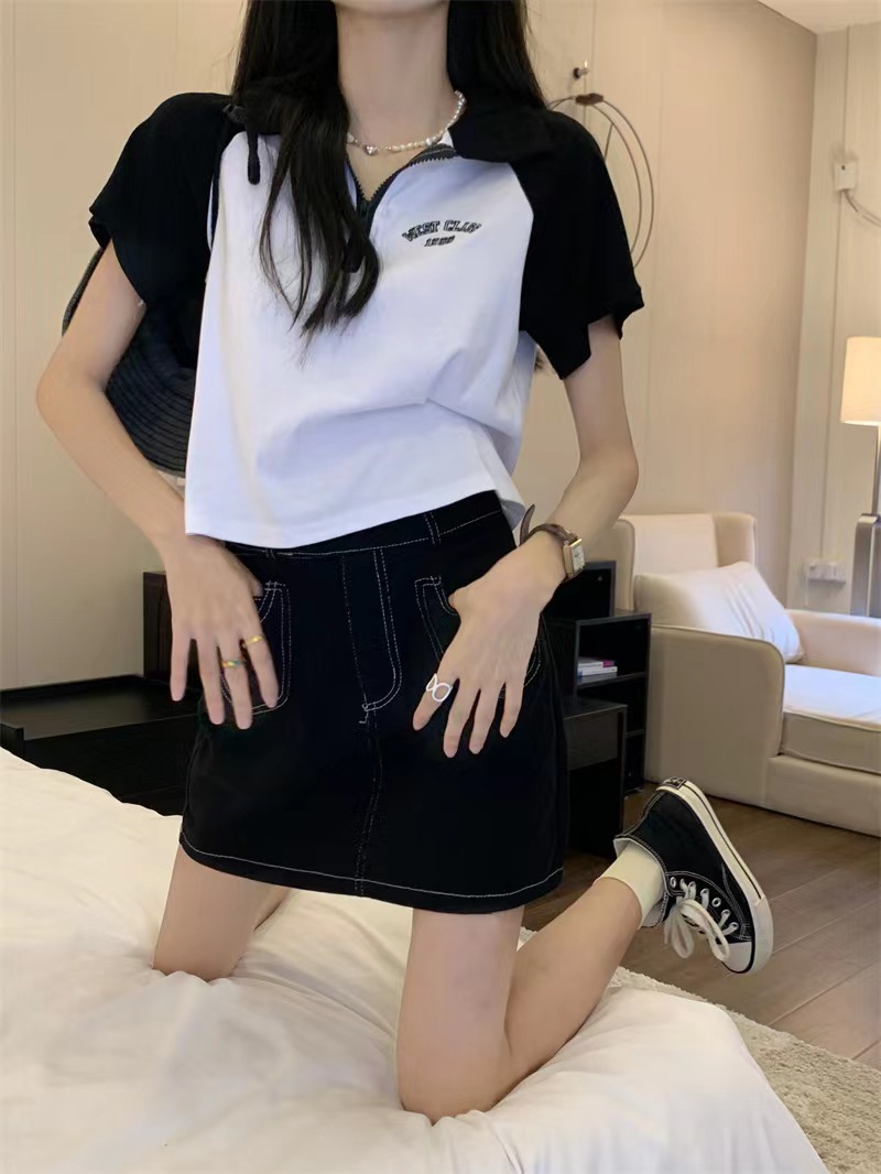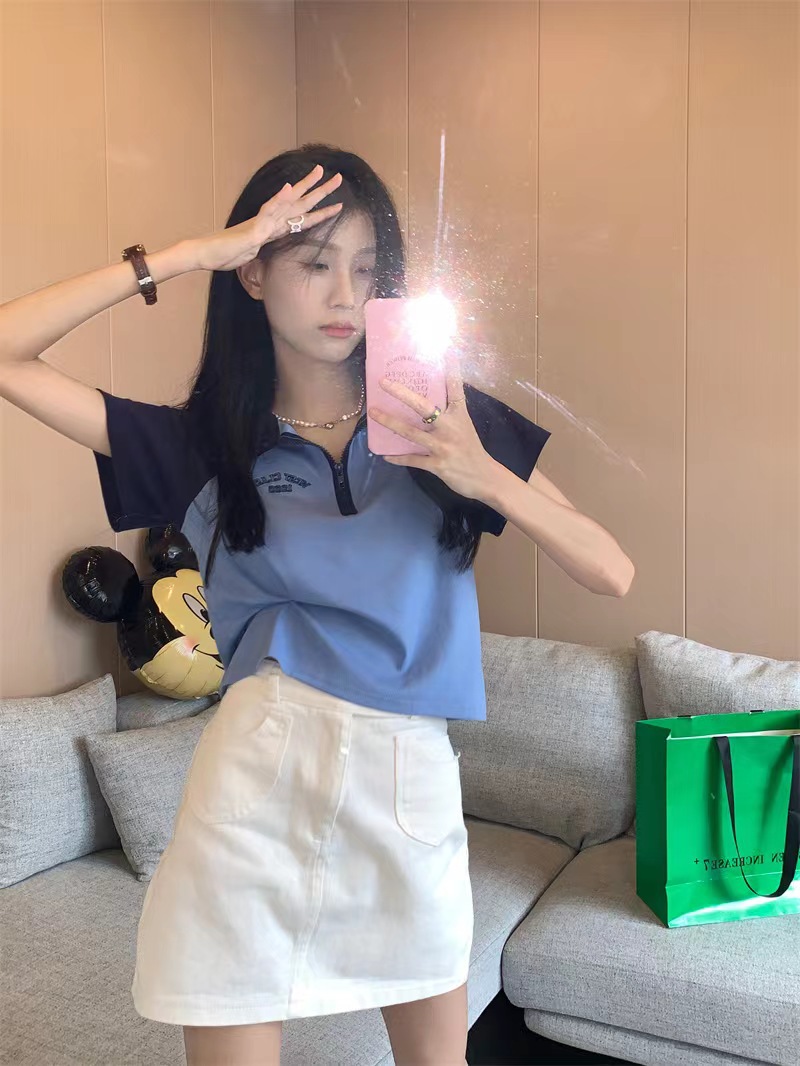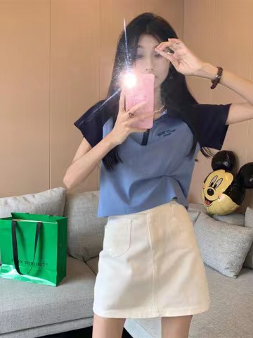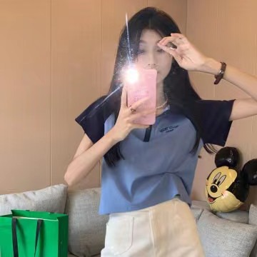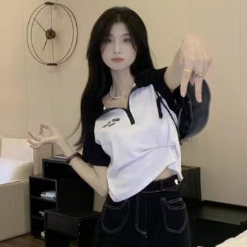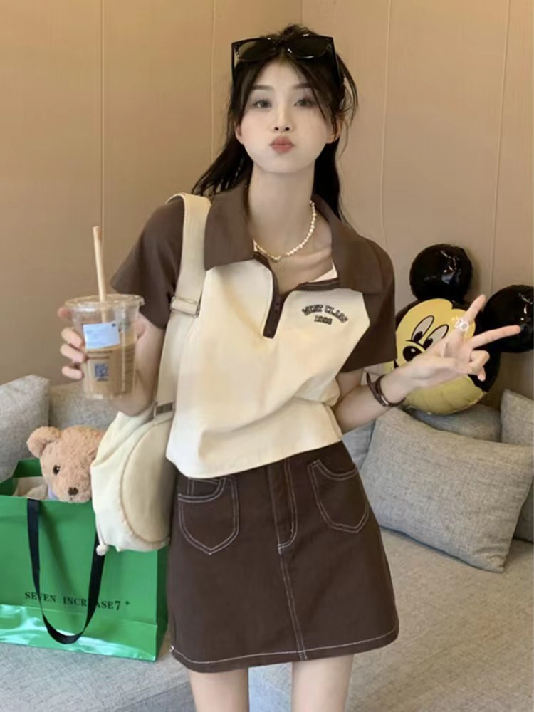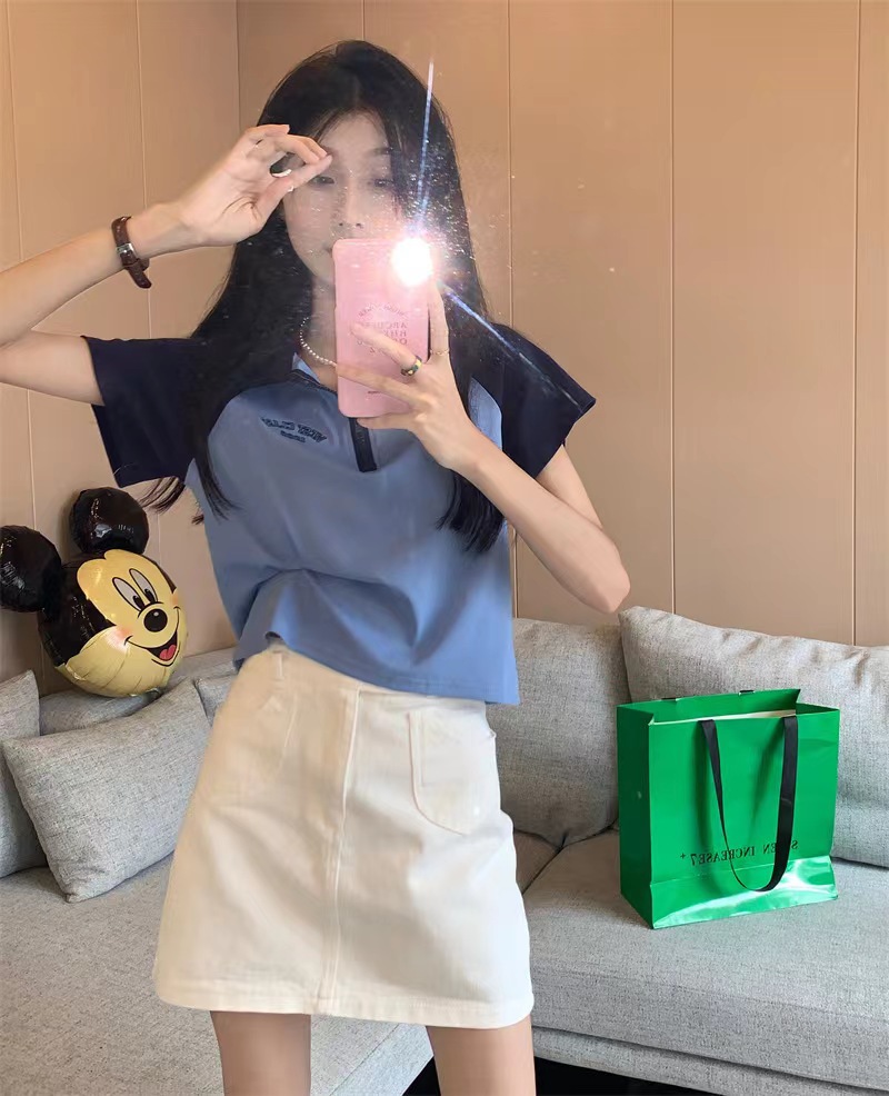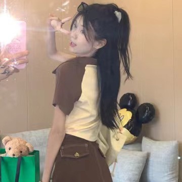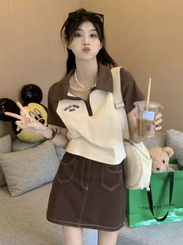 Рубашка-поло женская летняя 2023 летняя новая футболка с короткими рукавами в американском стиле Ретро контрастных цветов с буквами