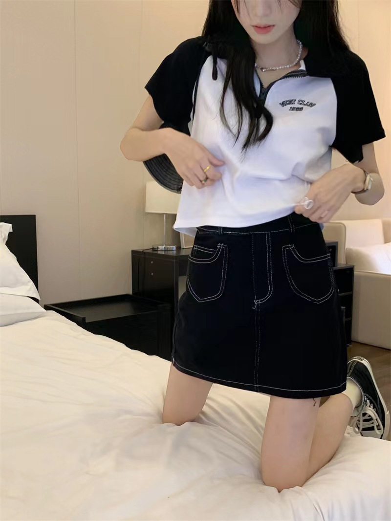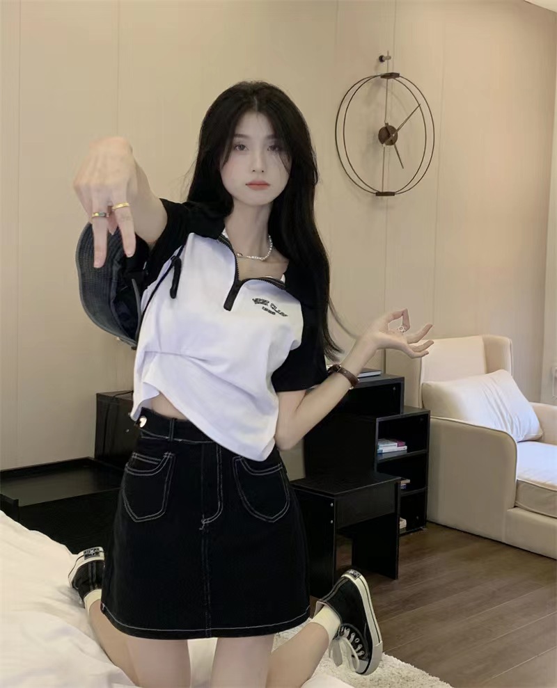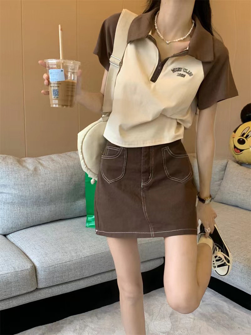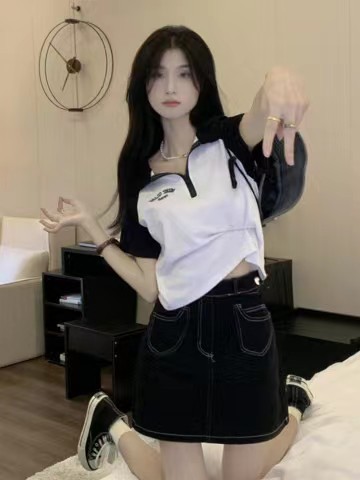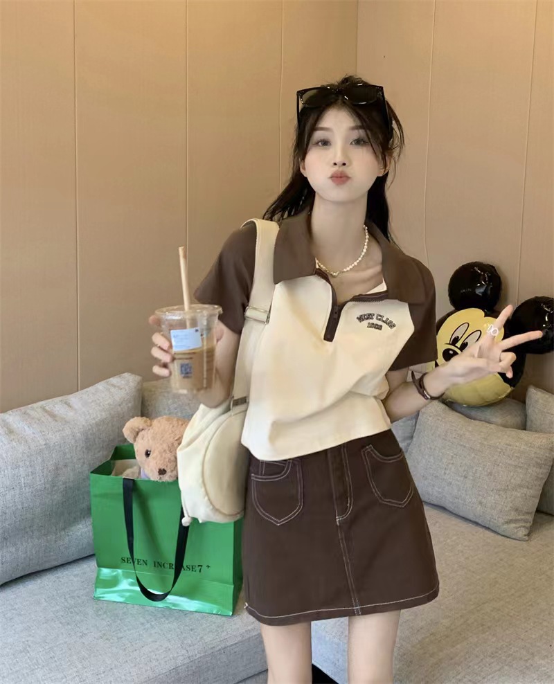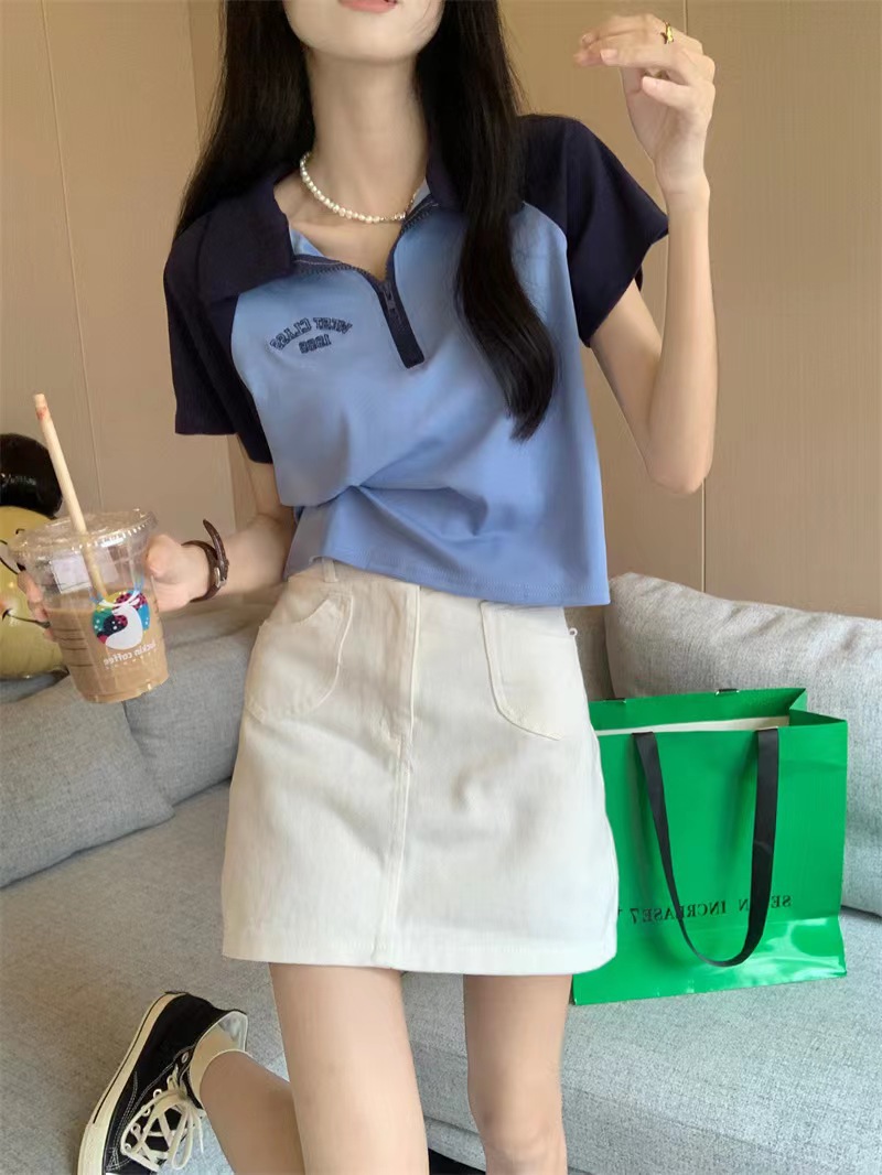 Рубашка-поло женская летняя 2023 летняя новая футболка с короткими рукавами в американском стиле Ретро контрастных цветов с буквами
