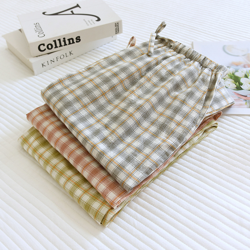 Весенне-летние Пижамные брюки из чистого хлопка, повседневные свободные домашние брюки, верхняя одежда, мужские и женские домашние брюки из выстиранного хлопка в клетку