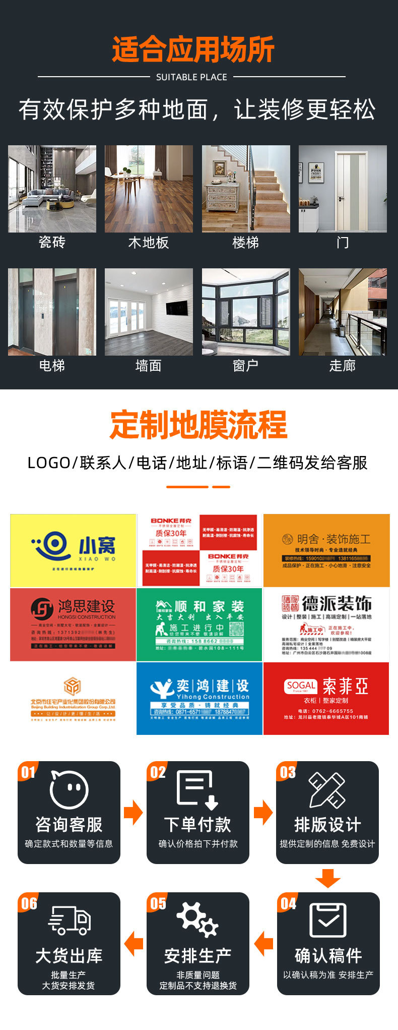Декоративная защита керамической плитки, деревянных полов, стен, лифтов, дверей и окон.
