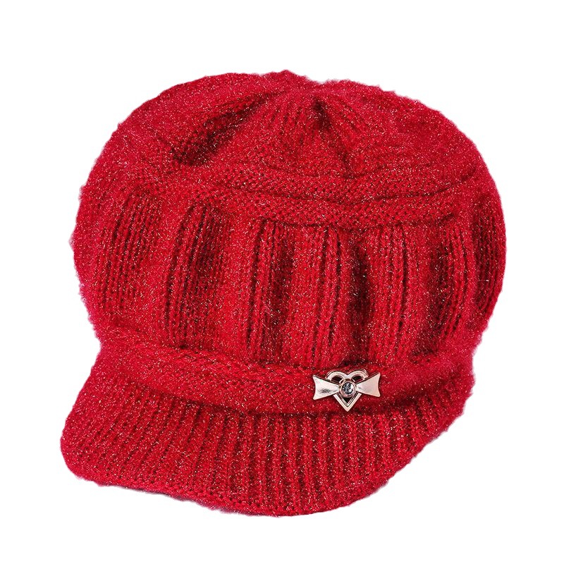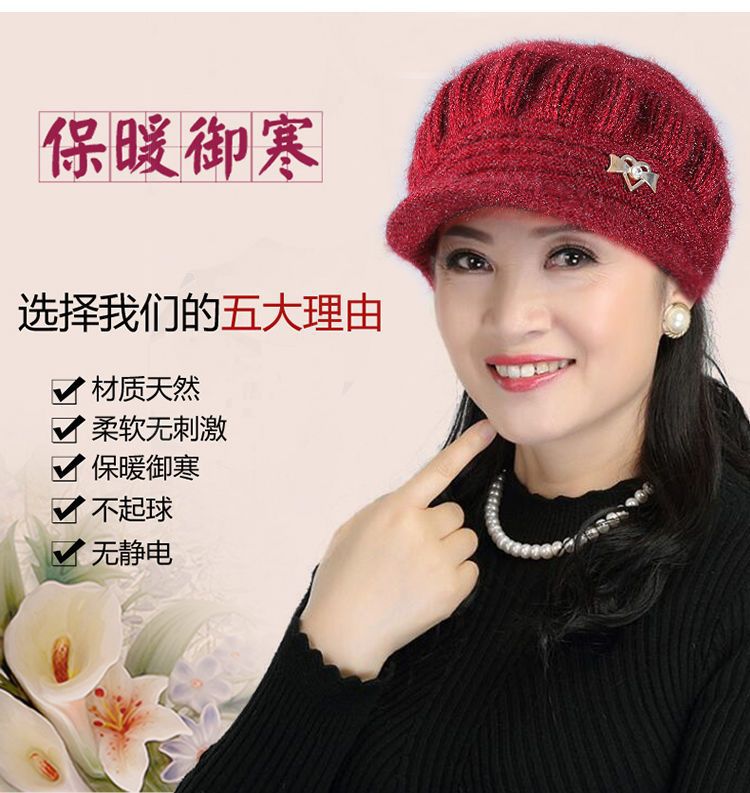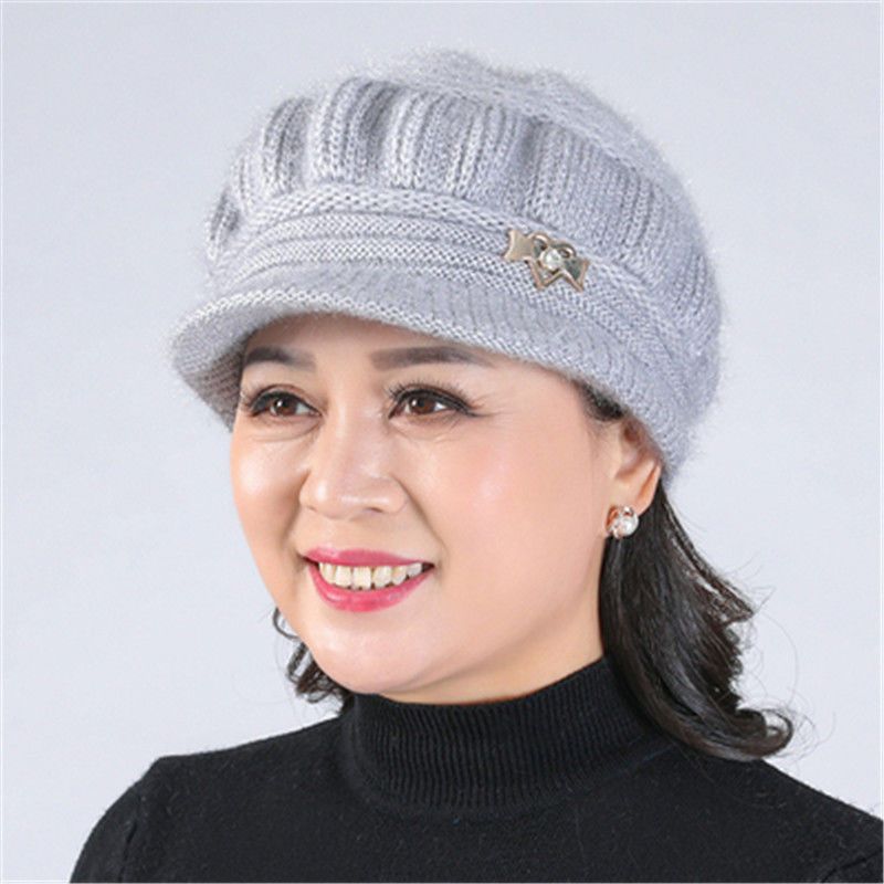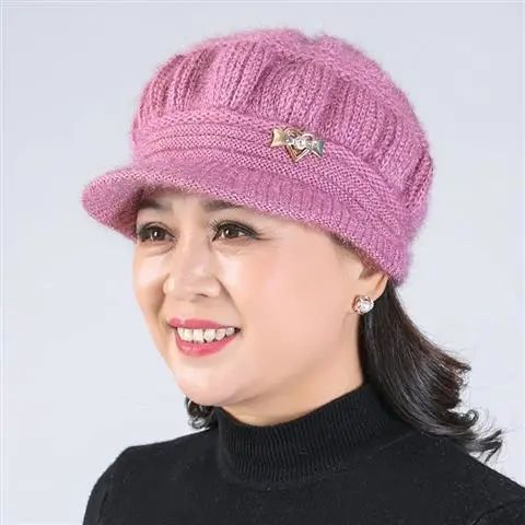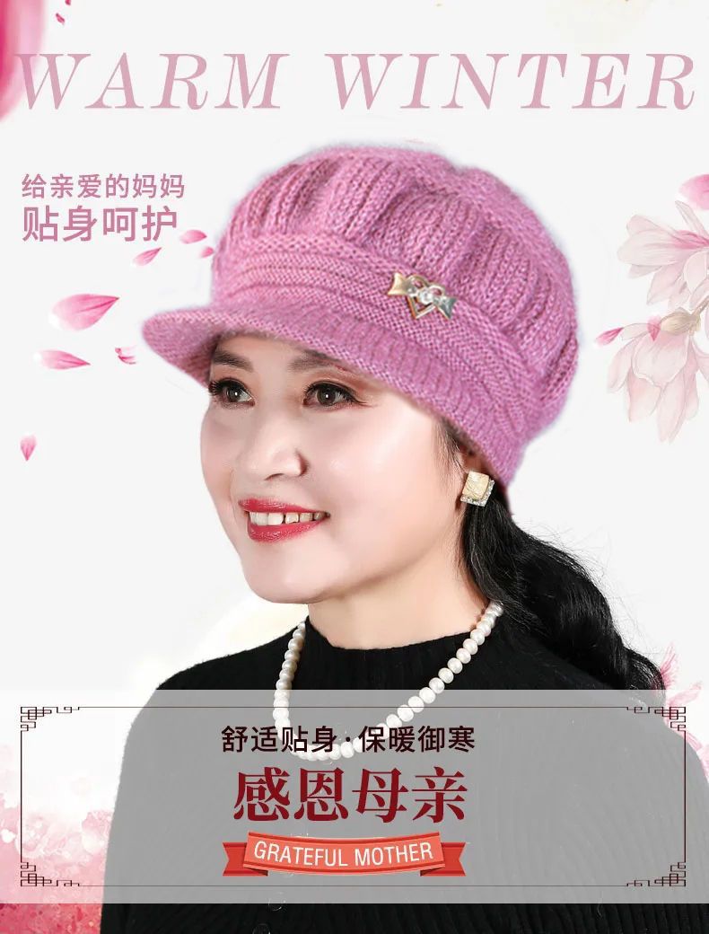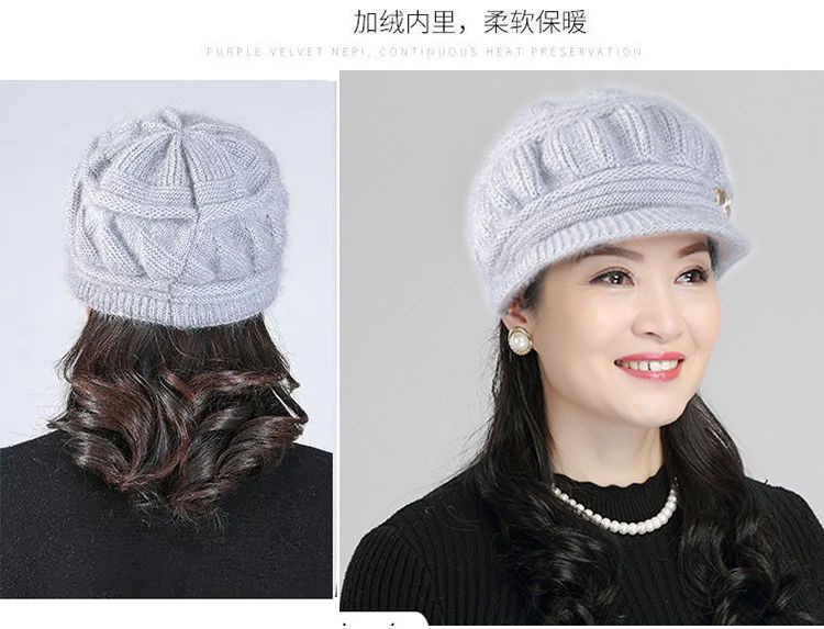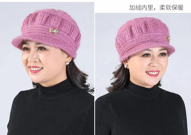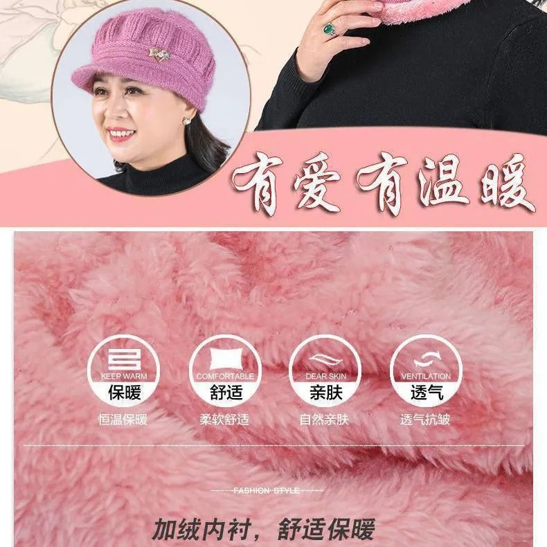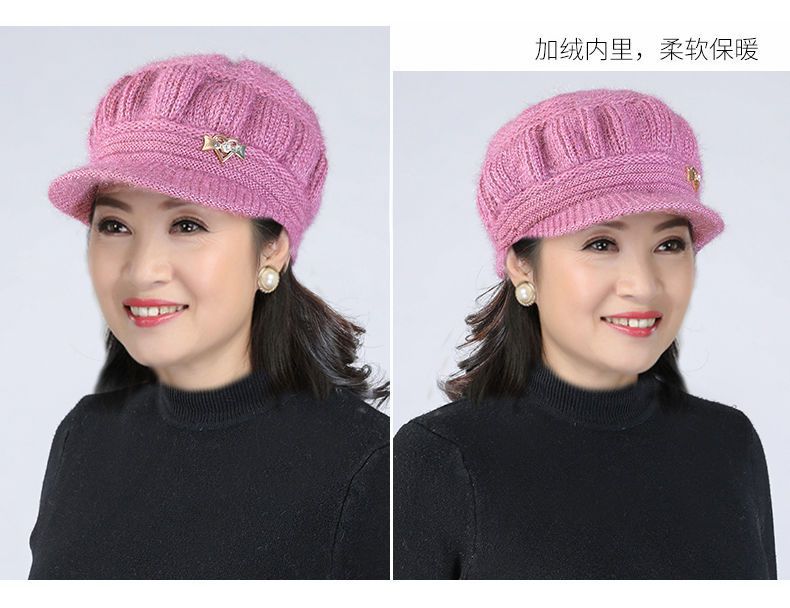 Новая вязаная шерстяная шапка, женская шапка среднего и пожилого возраста, теплая универсальная шапка на флисовой подкладке, тыквенная шапка для мамы и бабушки