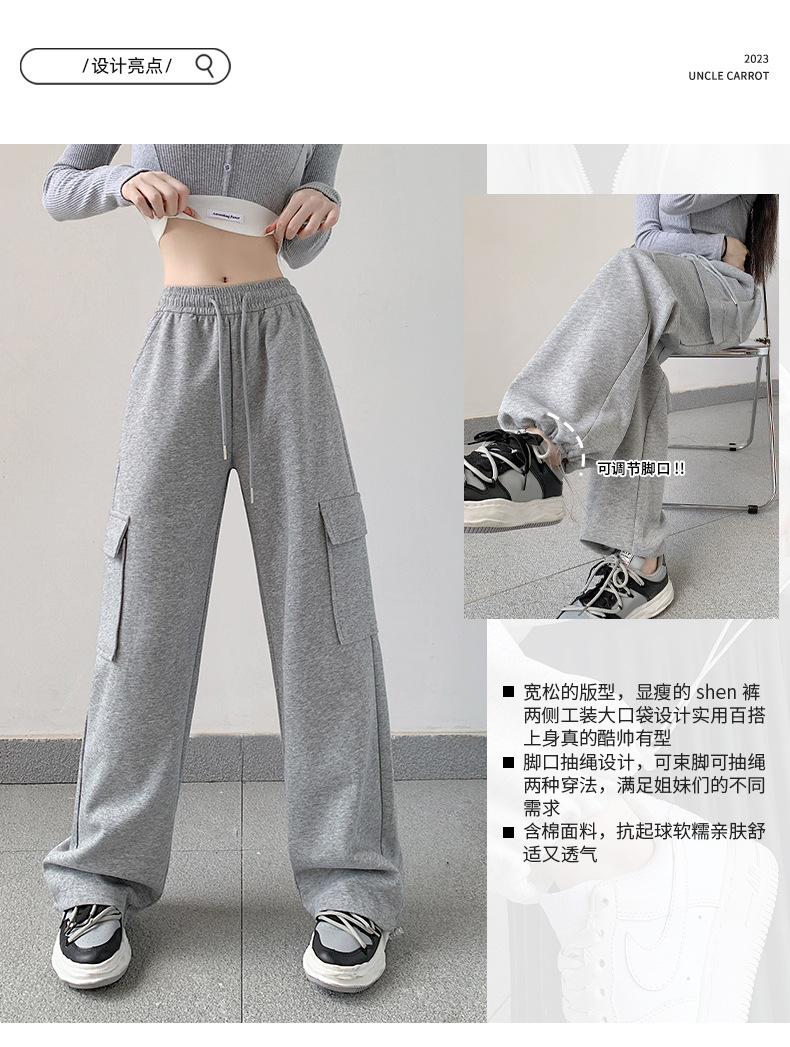Серый комбинезон Uncle Carrot, женские весенние 2320, новые повседневные брюки, свободные бархатные широкие спортивные брюки, женские