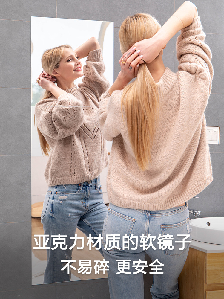 2-миллиметровое кросс-граничная высококачественное акриловое зеркало в полный рост с самоклеящейся основой, мягкое зеркало для ванной комнаты, наклейка-зеркало без необходимости сверления.
