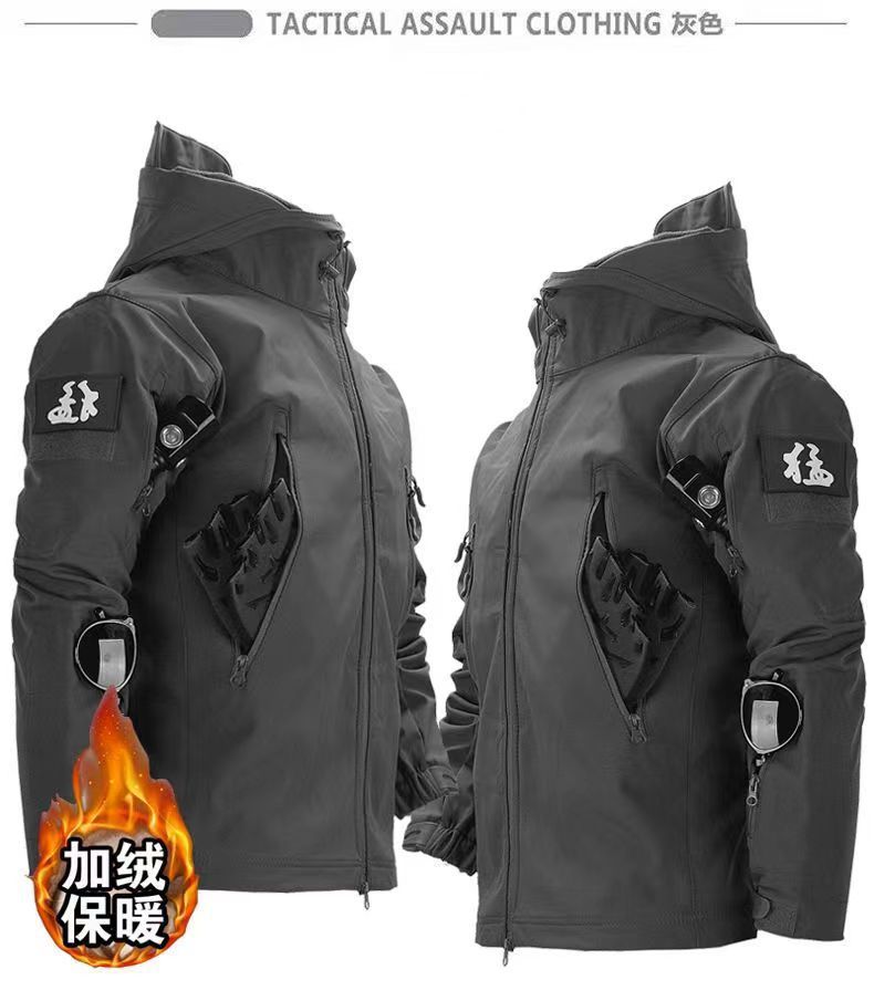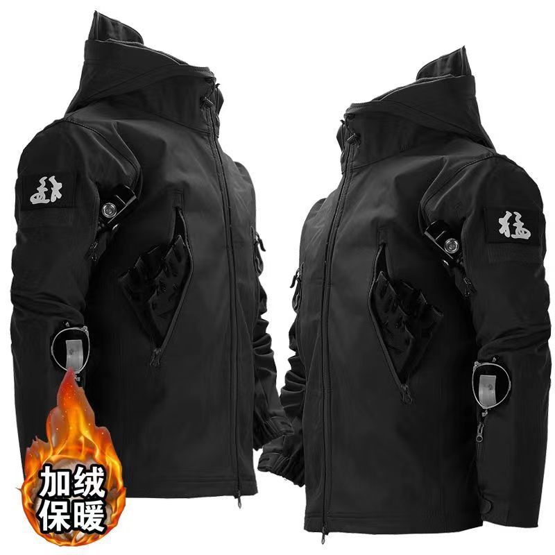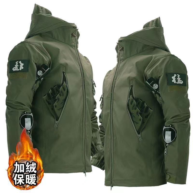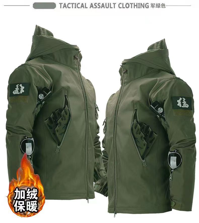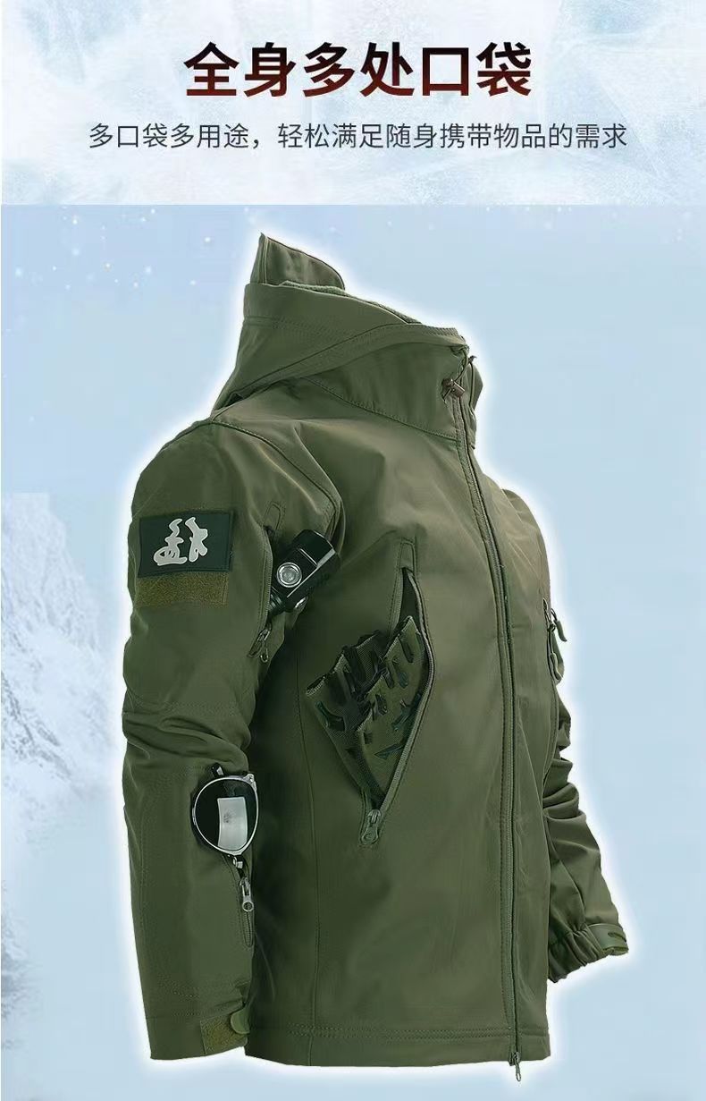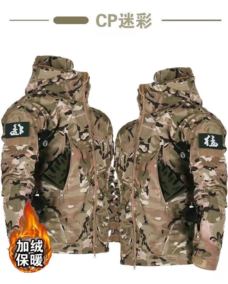 Мужская куртка из мягкой ткани типа "акульей кожи", зимняя водонепроницаемая и ветрозащитная, с флисовой подкладкой, подходит для езды на велосипеде, альпинизма и катания на лыжах, камуфляжный дизайн.