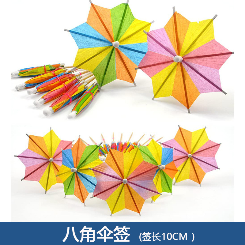 八角签: 长度10CM 伞面直径8.5cm左右 单支克重:0.7克 可以按需包装,50支/包(重42克 12cm*10cm*2.5cm)