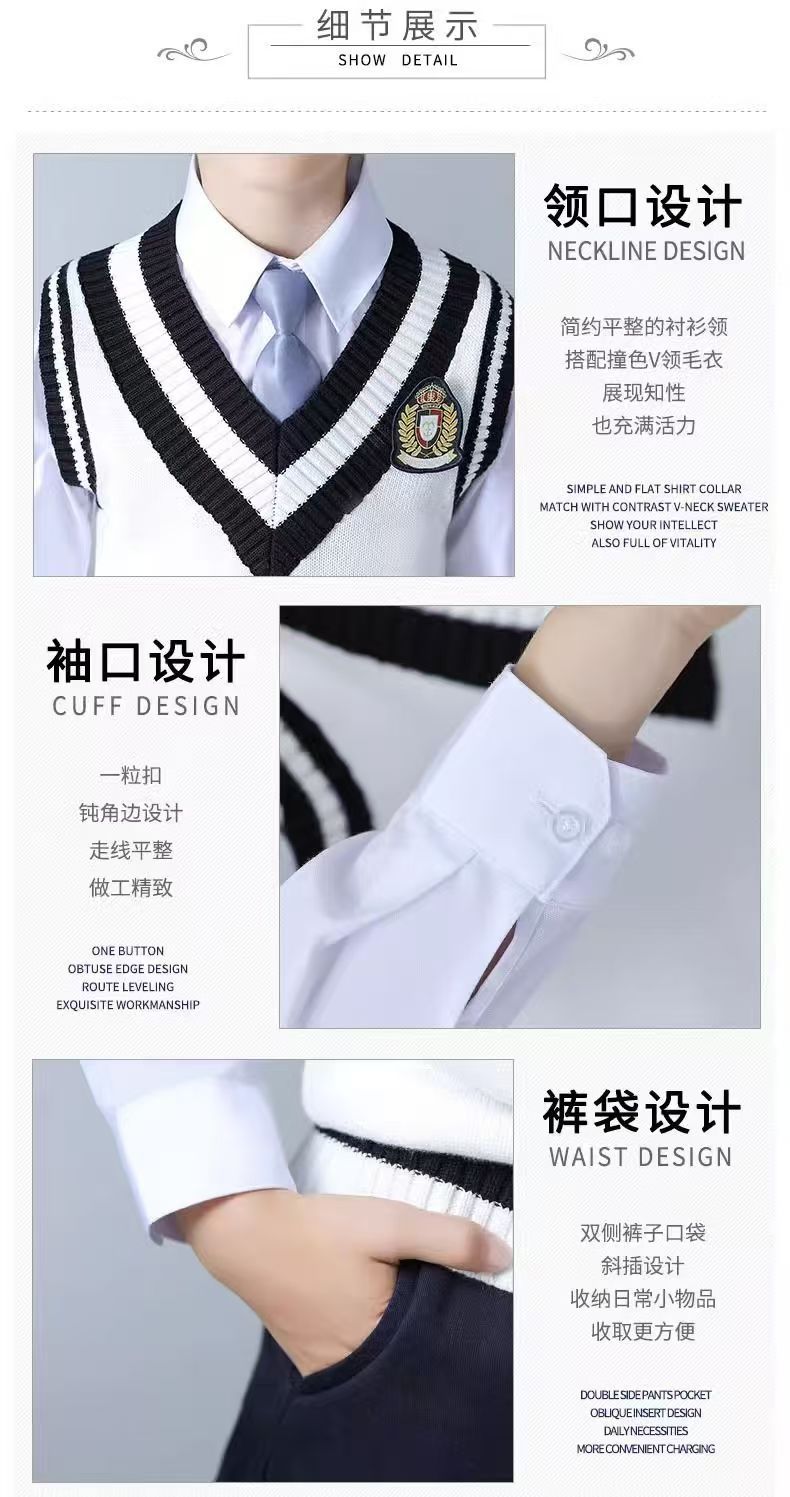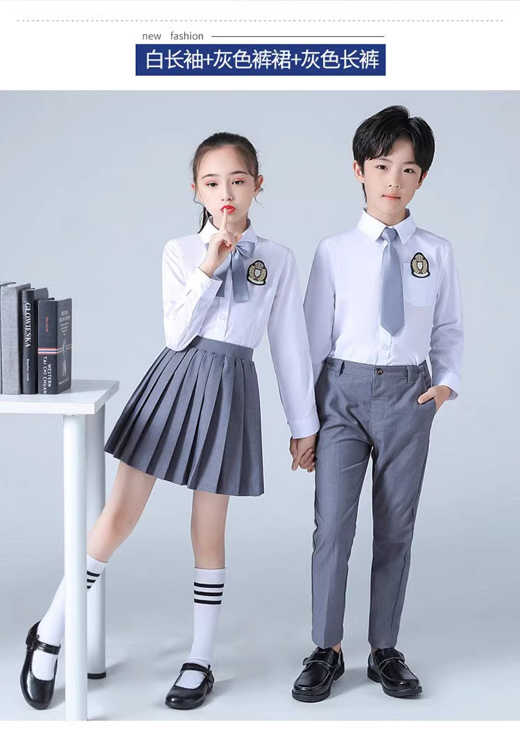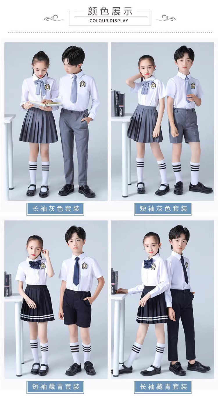 Мужской серый длинный костюм-четверка; Женский серый длинный комплект из четырех предметов; Мужской серый короткий костюм из пяти предметов; Женский короткий костюм серого цвета из пяти предметов; Темно-синий мужской короткий костюм из пяти предметов; Темно-синий женский короткий костюм из пяти предметов; Темно-синий мужской длинный стиль; Темно-синий женский длинный стиль