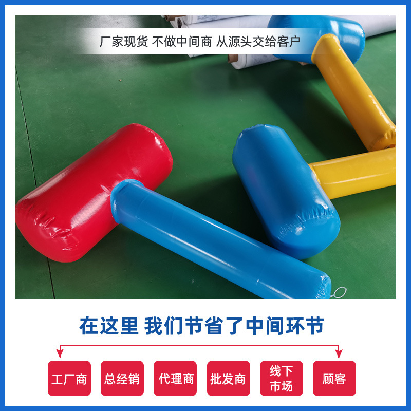 Веселые спортивные игры, надувные и решенные, гигантский негабаритный молот громового молота разбивает воздушный шар, строительное оборудование