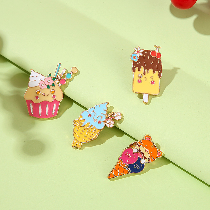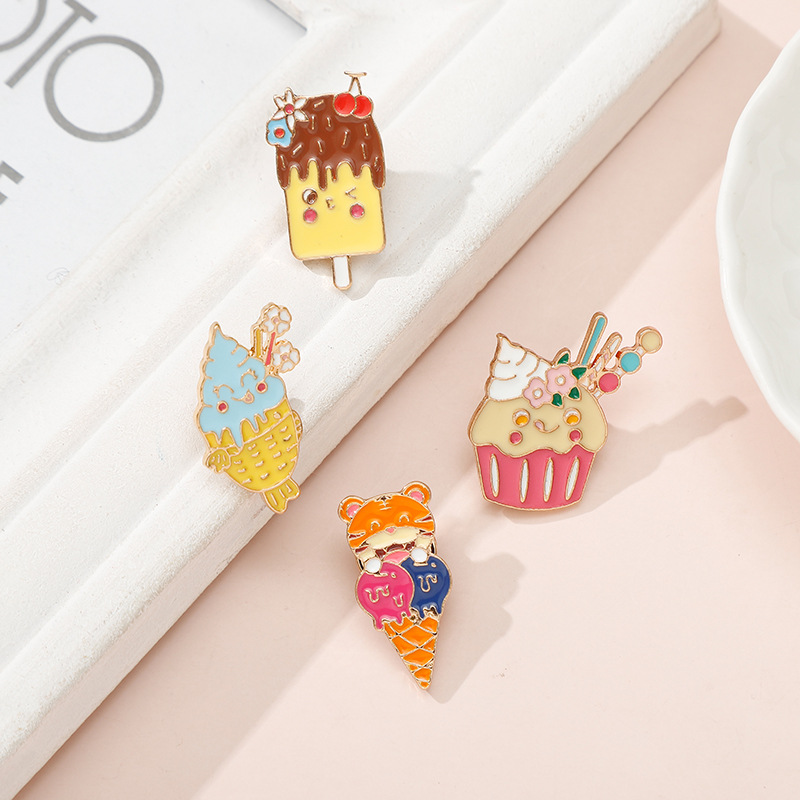 Брошь с мороженым, значок с мультяшным конусом, милые аксессуары для школьной формы, пары, креативная ниша, ценный кулон