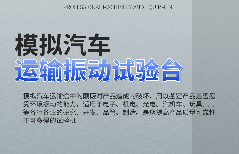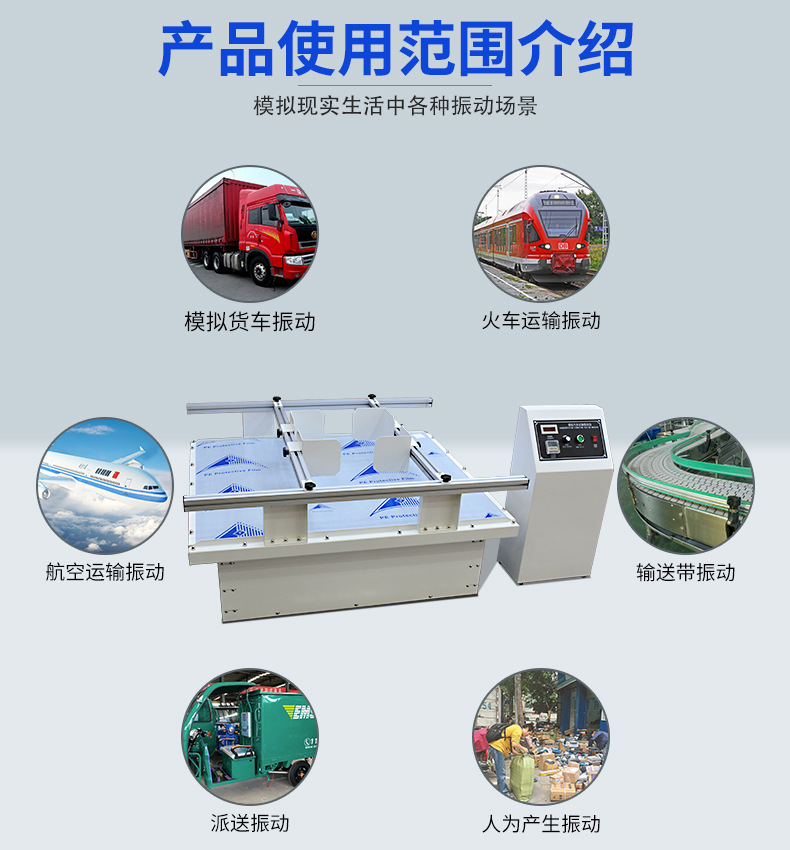 Стенд для имитации транспортных вибрационных испытаний подходит для моделирования транспортных испытаний игрушек, цифровых устройств, мебели, подарков, керамики, упаковки и других продуктов.
