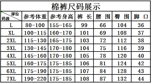 L; XL; 2XL; 3XL; 4XL; 5XL; 6XL; 7XL