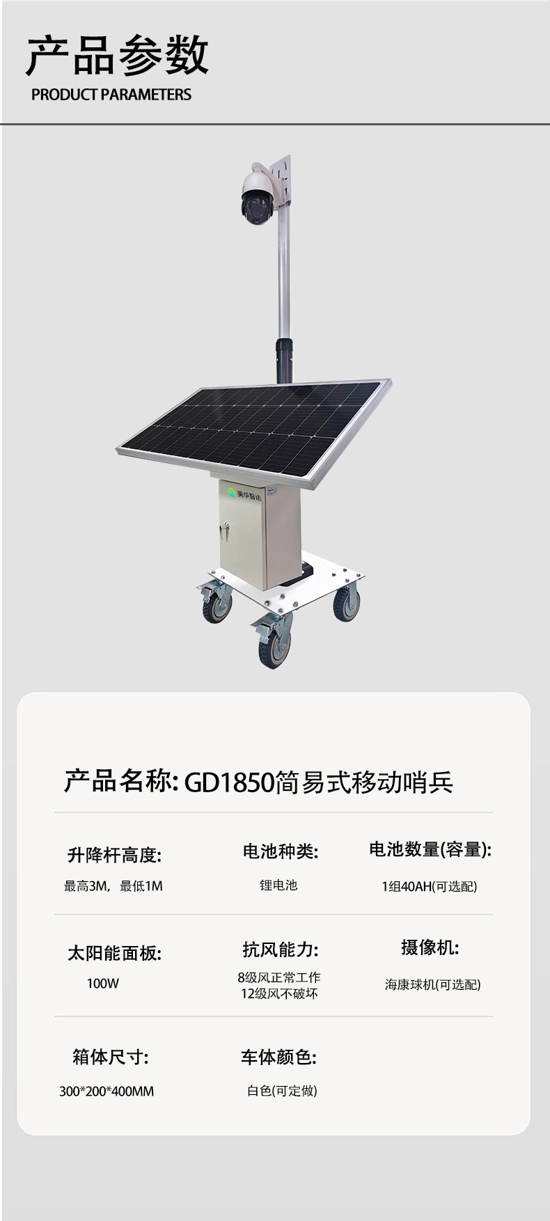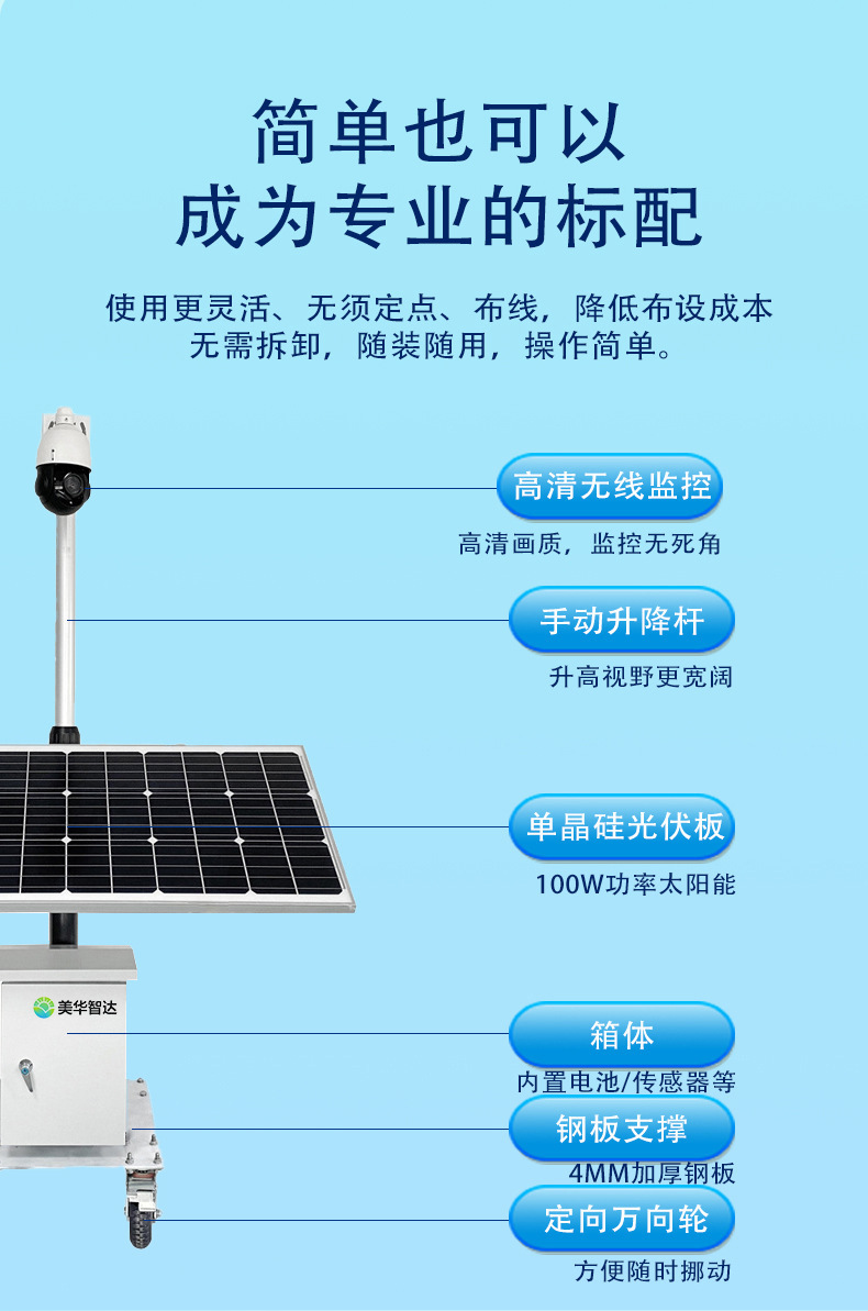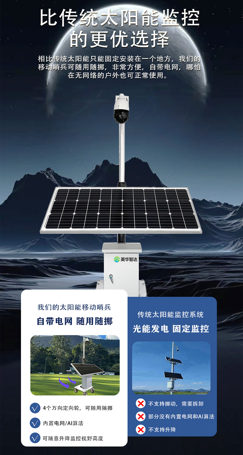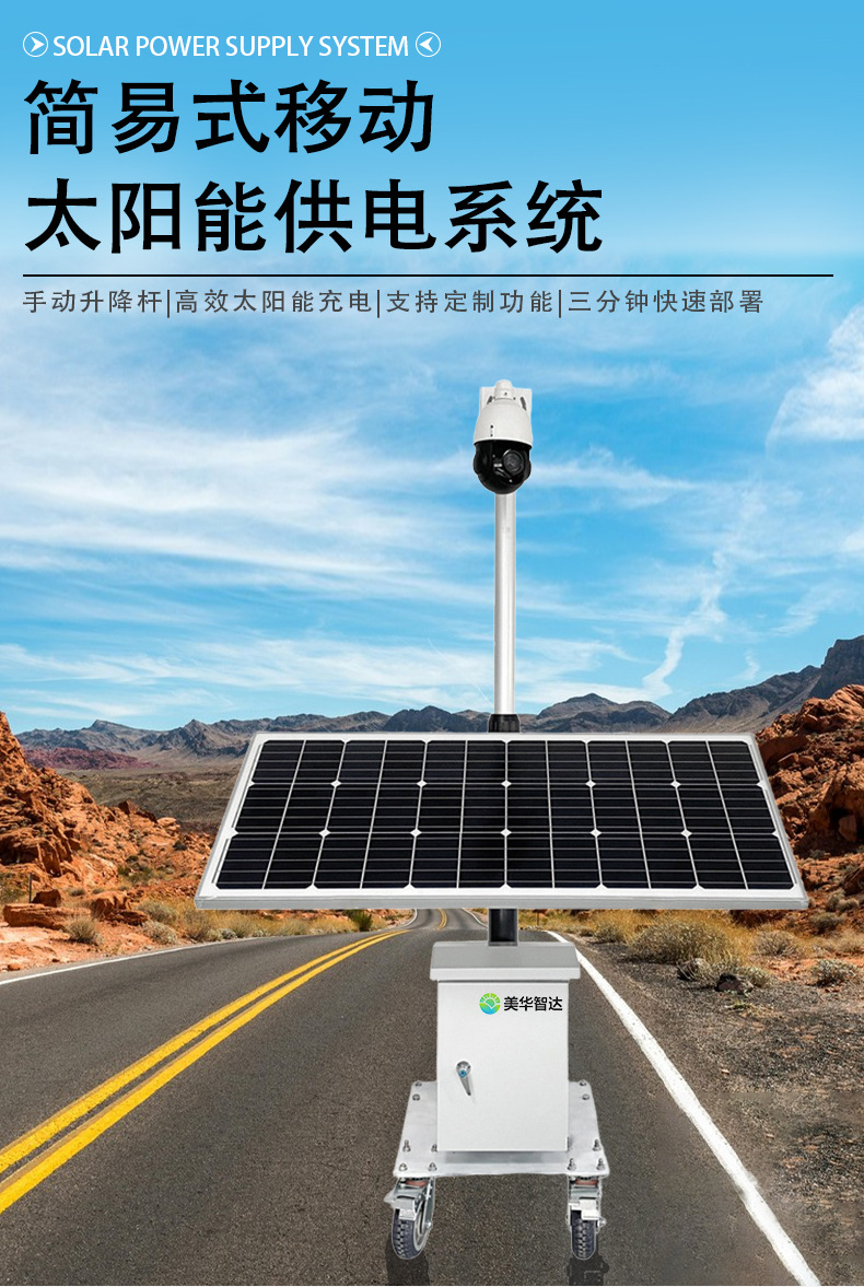 Солнечная мобильная вышка-платформа для видеонаблюдения с кронштейном для камеры и беспроводной системой питания на солнечных батареях