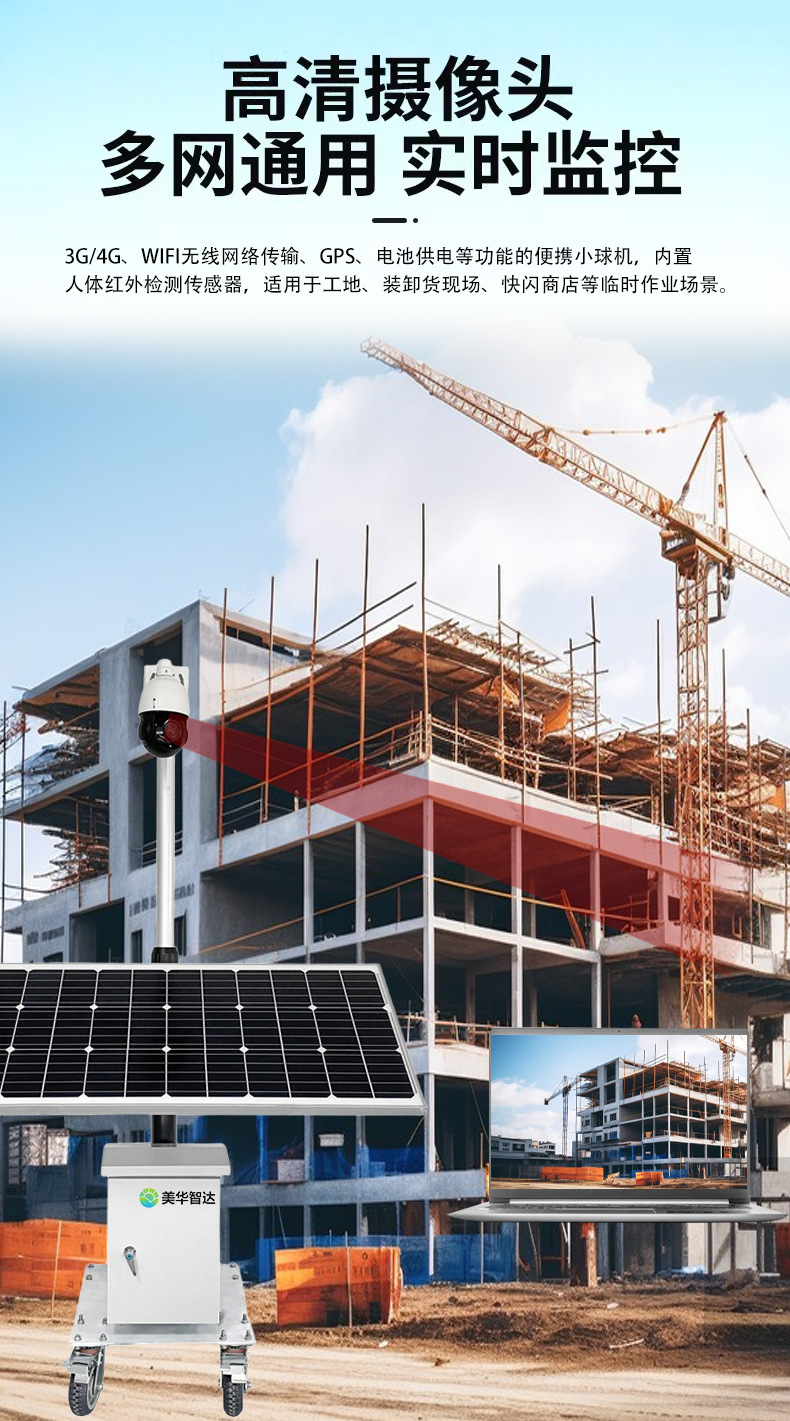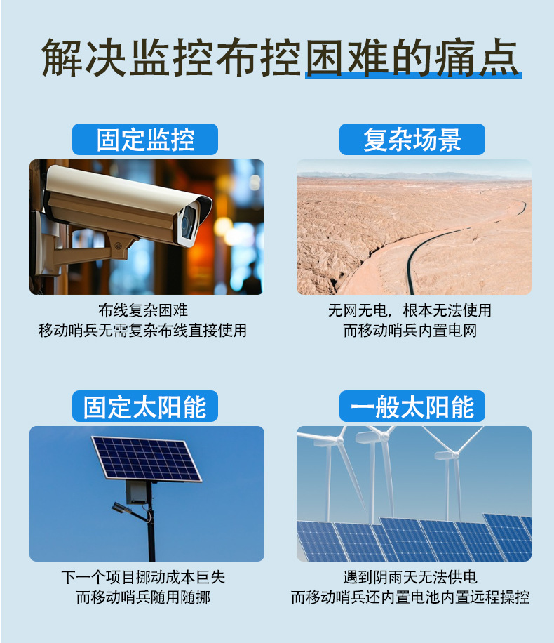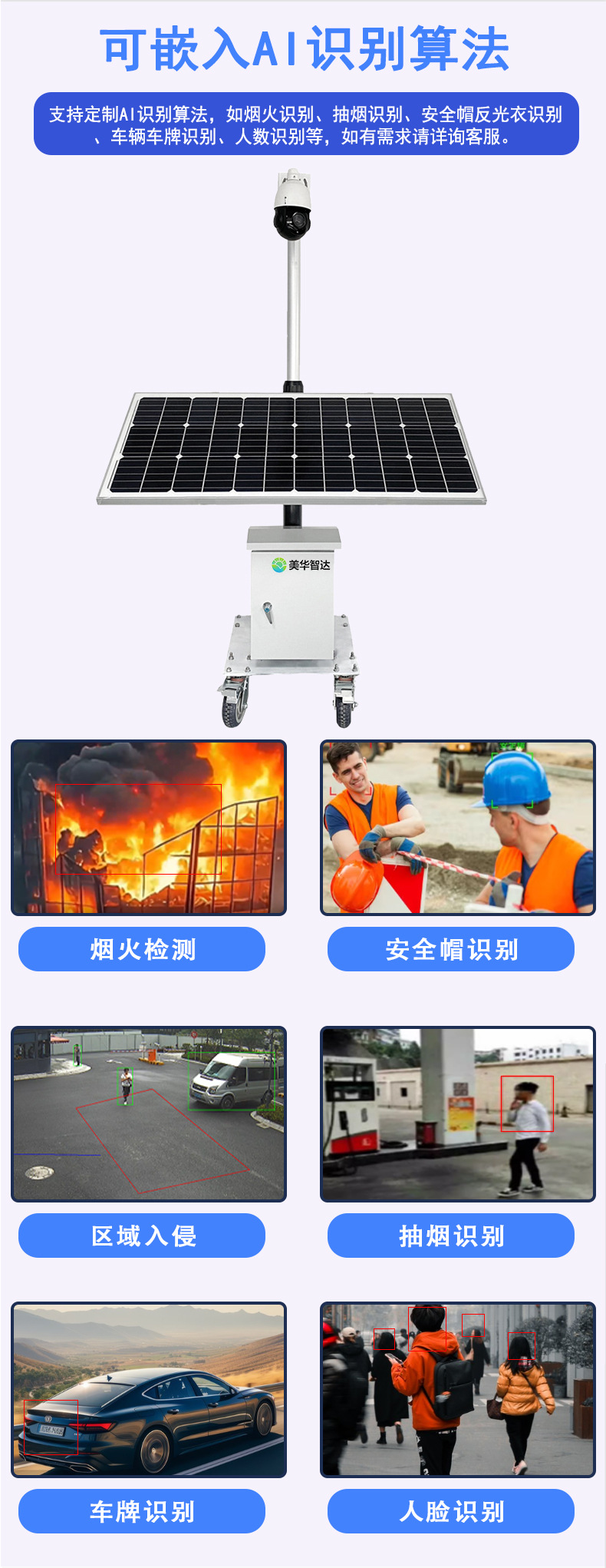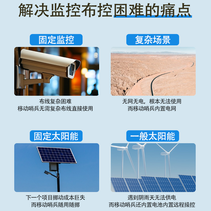 Солнечная мобильная вышка-платформа для видеонаблюдения с кронштейном для камеры и беспроводной системой питания на солнечных батареях