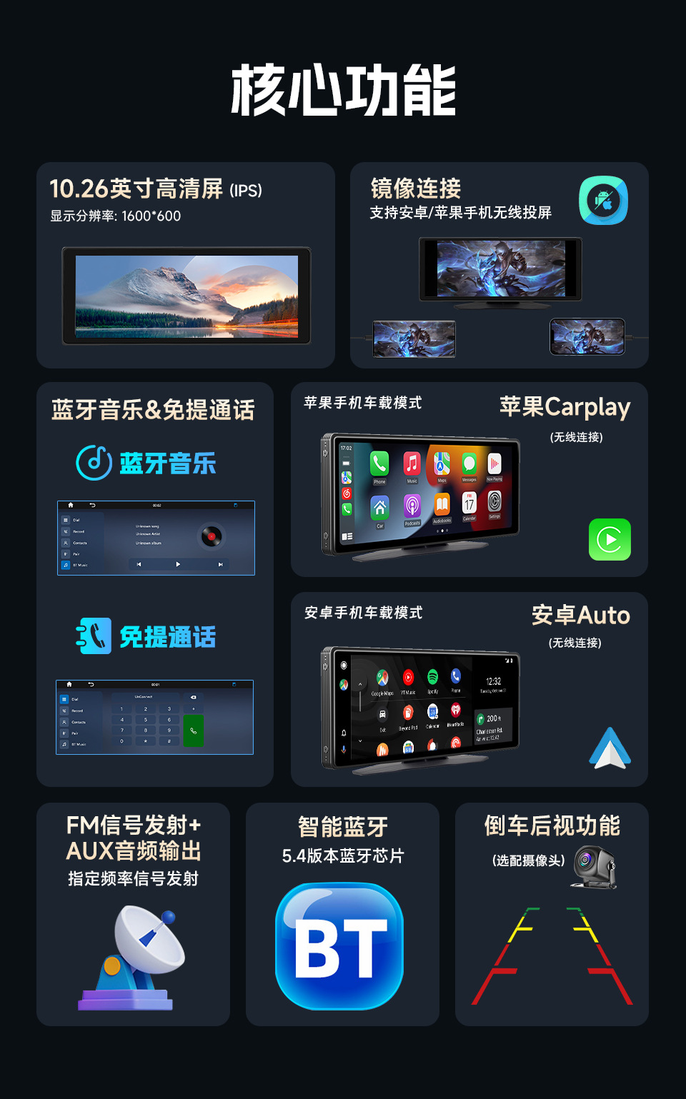 10,26-дюймовый портативный PND автомобиль MP5 HD задним ходом изображения беспроводной Carplay автомобиль Bluetooth радио