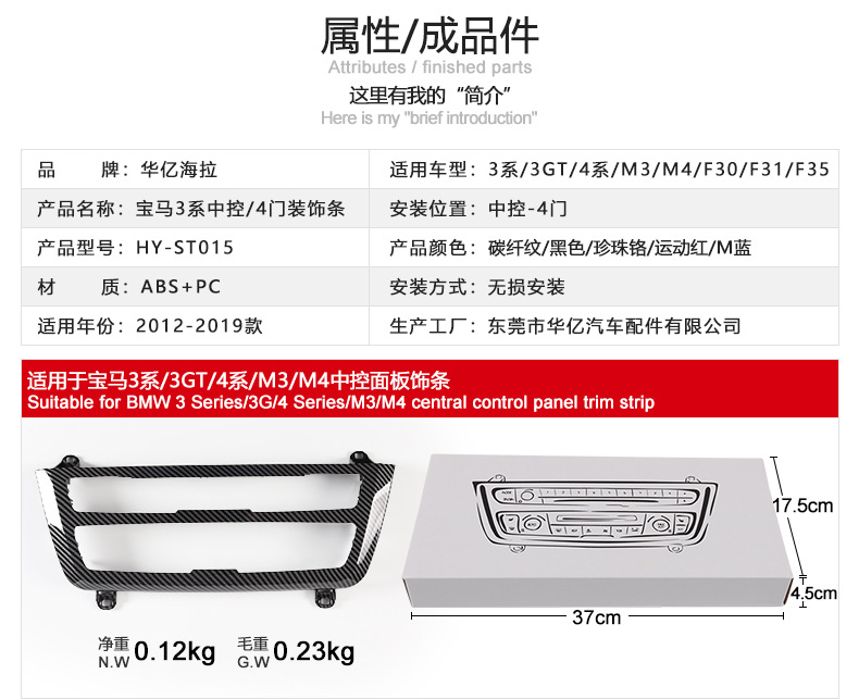 Подходит для внутренней центральной панели управления BMW 3 серии/3GT/4 серии/M3/M4 F30/F31/F35 четырехдверная внутренняя отделка