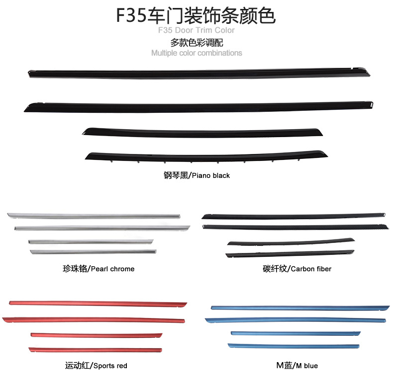 Центральное управление-углеродное волокно; Центральный контроль-черный рояль; Центральное управление-жемчужный хром; Центральный контроль-Спорт Красный; Центральное управление-M синий; F30-F31 четыре двери-рисунок из углеродного волокна; F30-F31 Четыре-черный рояль; F30-F31 четырехдверный перламутровый хром; F30-F31 четырехдверный-спортивный красный; F30-F31 четырехдверный-M синий; F35 четыре двери-рисунок из углеродного волокна; F35 четыре двери-черный рояль; F35 четыре двери-жемчужный хром; F35 четырехдверный-спортивный красный; F35 четырехдверный-M синий