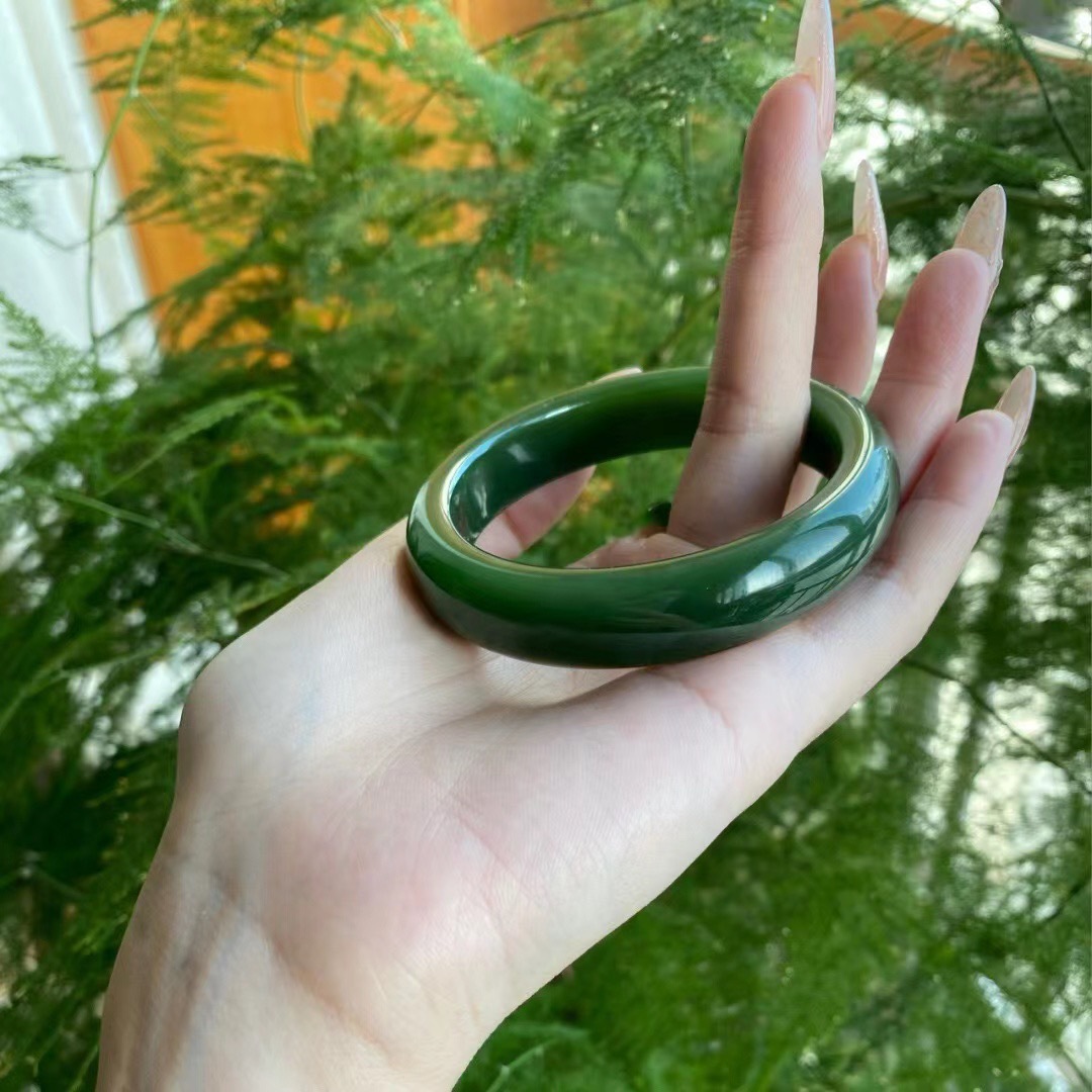 Браслет из нефрита Xinjiang Hetian, Женский плоский полосатый широкий шпинат, зеленый, натуральные товары, Нефритовая ледяная база, настоящий нефритовый браслет