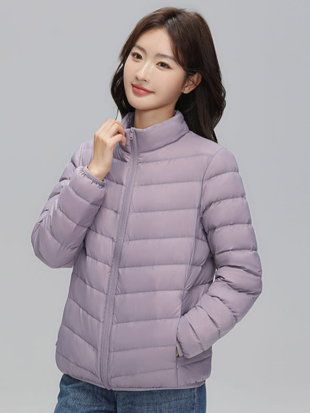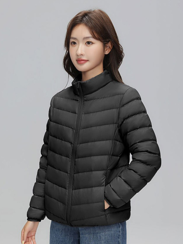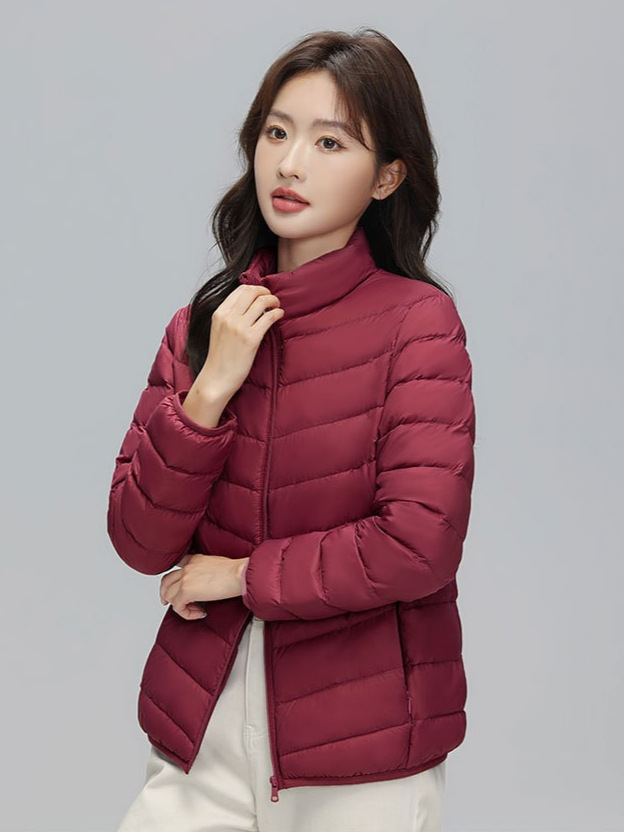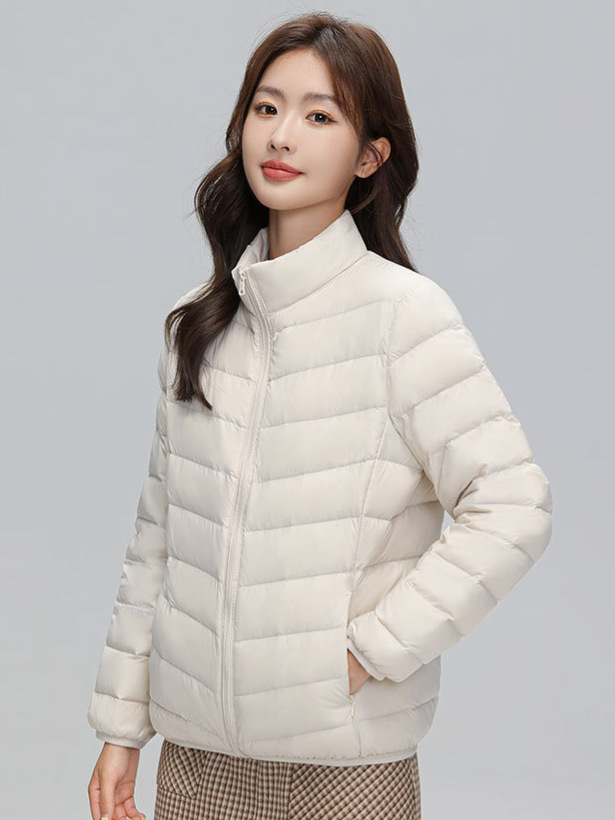 Легкий женский пуховик, новинка осени-зимы 2025, укороченный фасон, 90% белый утиный пух, зимний воротник-стойка, повседневное приталенное пальто, трендовый.