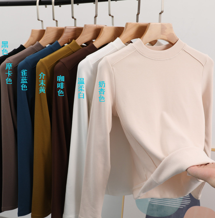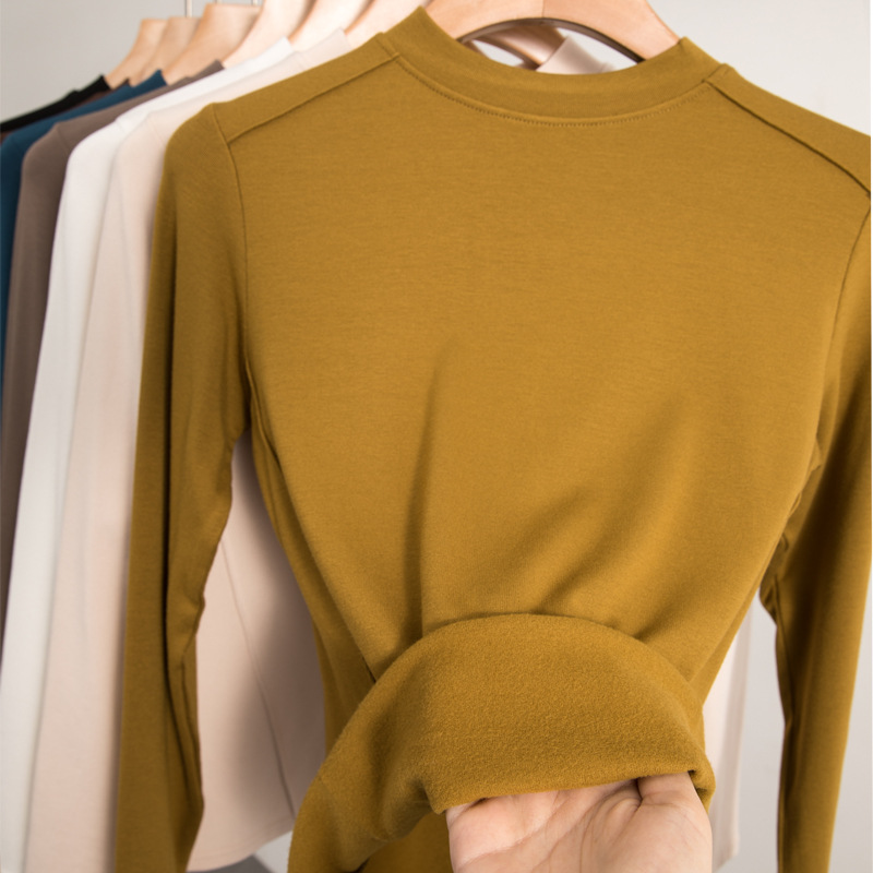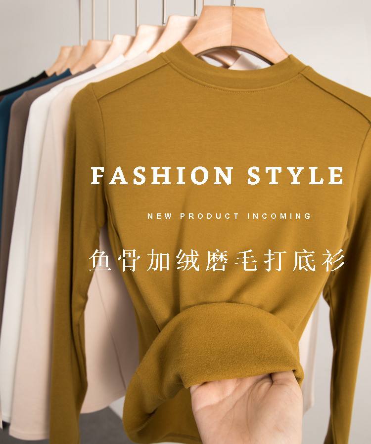 Осень и зима новая бархатная теплая нижняя рубашка для женщин с начесом и длинными рукавами большого размера, внутренняя верхняя футболка с рыбьей косточкой для женщин от производителя