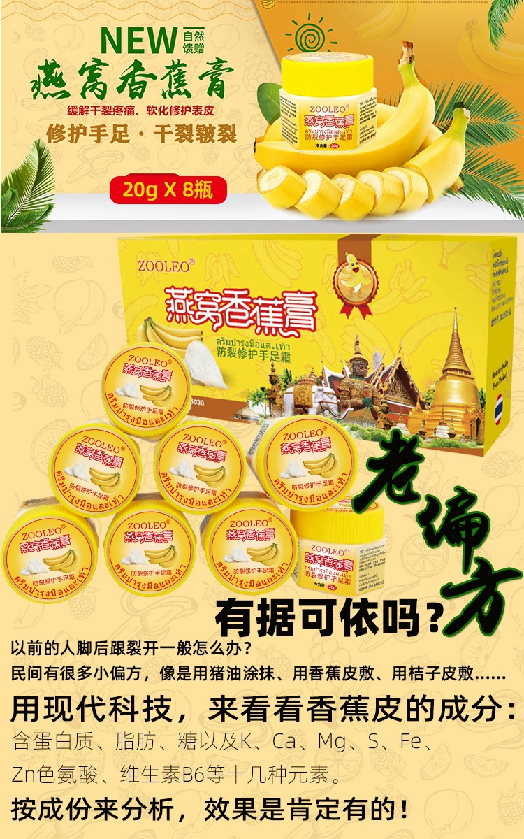 В каждой бутылке есть крем для защиты от подделок Thai Bird's Nest с банановым кремом для пяток и трещин против обморожений крем для рук и ног.