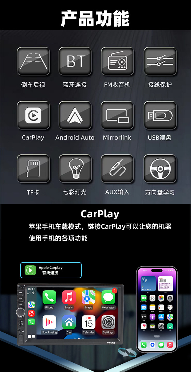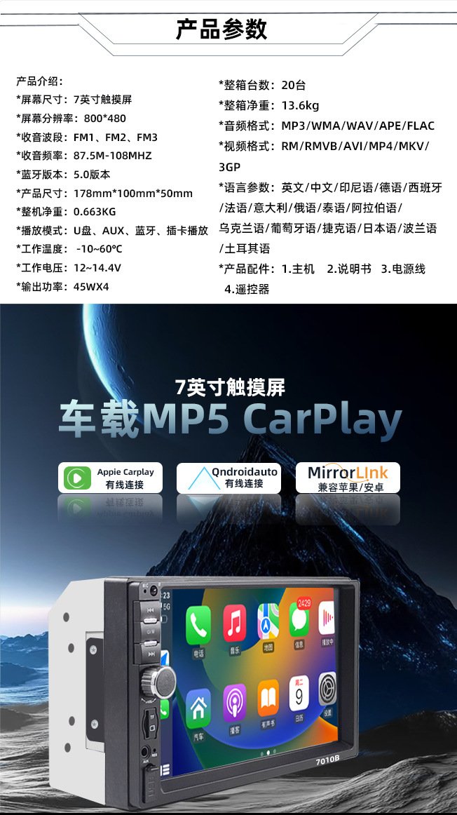нейтральный HD 7inch автомобильный MP5 Bluetooth громкой связи FM-карта реверсивный приоритет 7010B автомобильный MP5-плеер