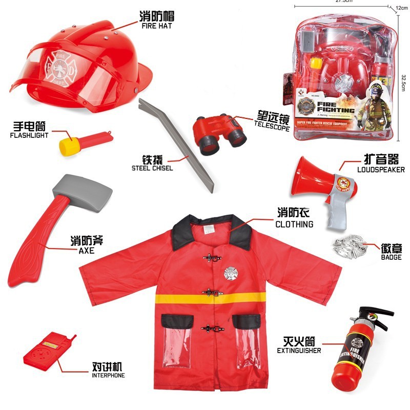 Трансграничный игровой домик Игрушка Моделирование пожарного Игрушечный костюм Детские ролевые игры Инструменты для раннего образования Реквизит для науки и образования