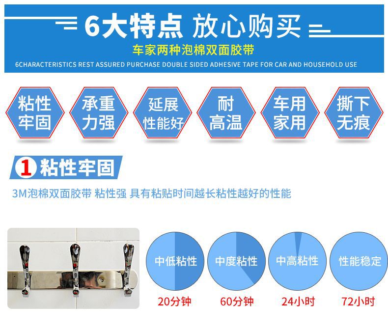 Двусторонний клей из белого пенопласта 3 м 1600T, высоковязкая автомобильная пена, Круглый неперфорированный немаркий крючок, самоклеящийся