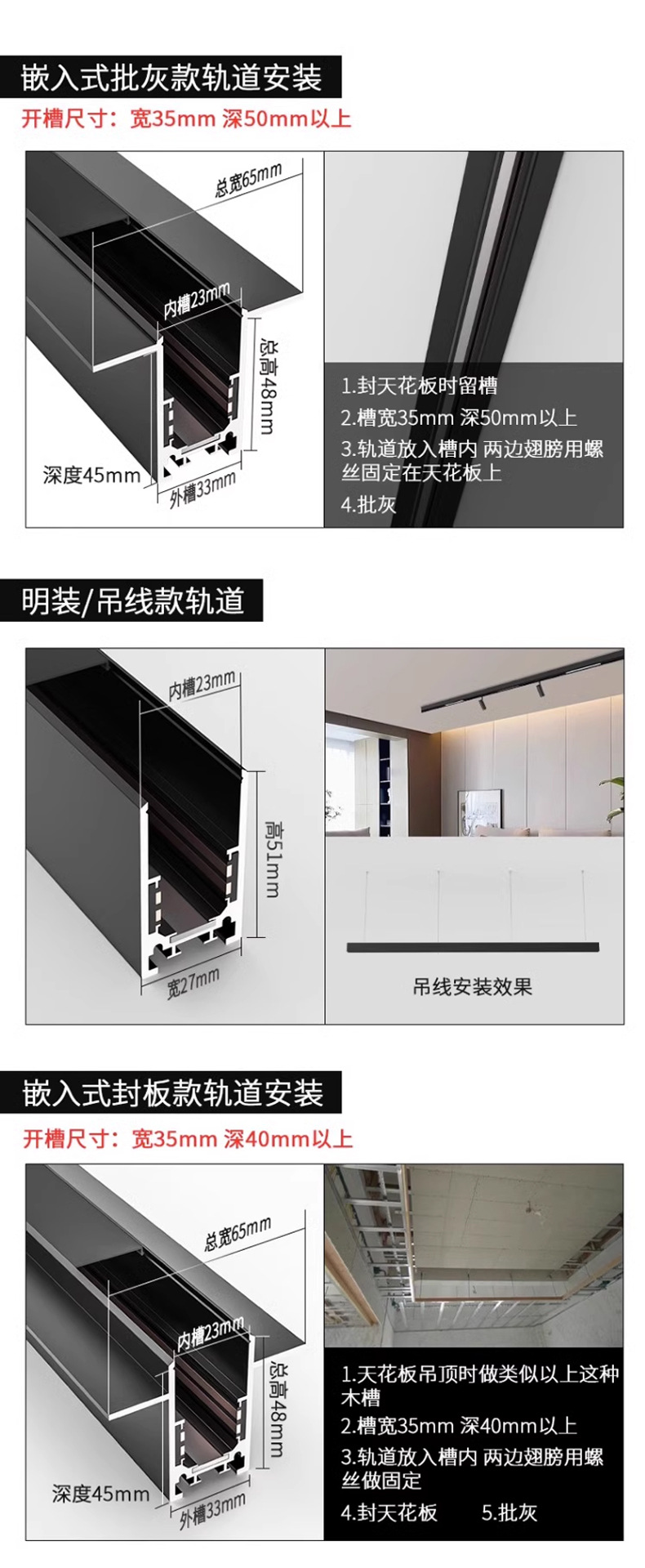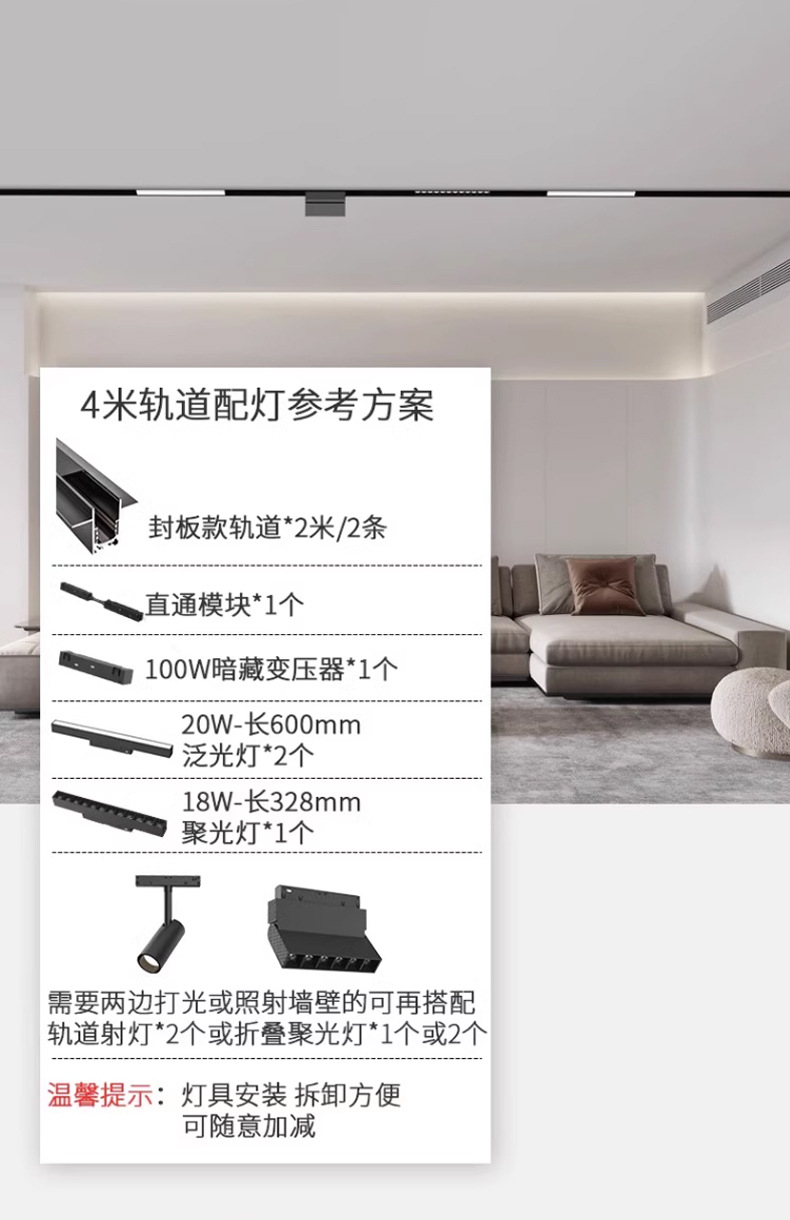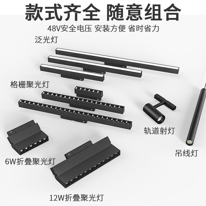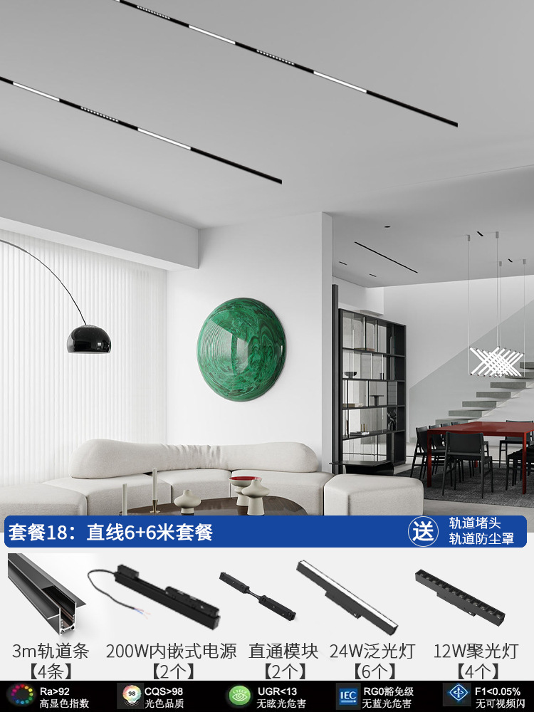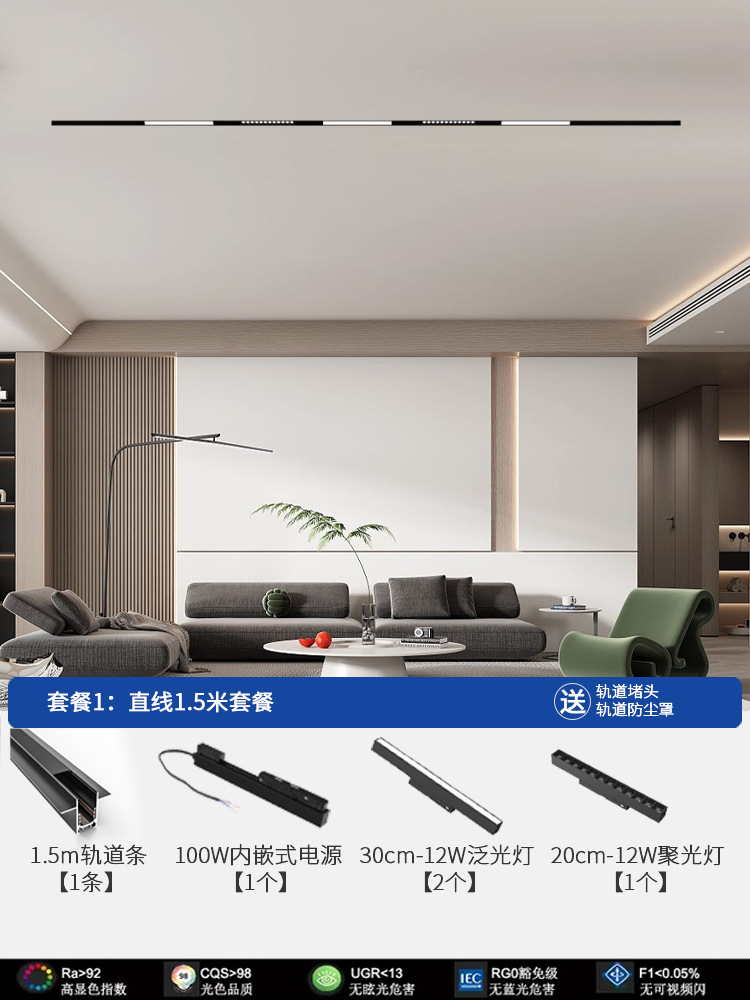 Магнитный дизайн трековый свет комбинированный пакет для гостиной спальни без основного освещения Встроенный светодиодный провод свет без рамки