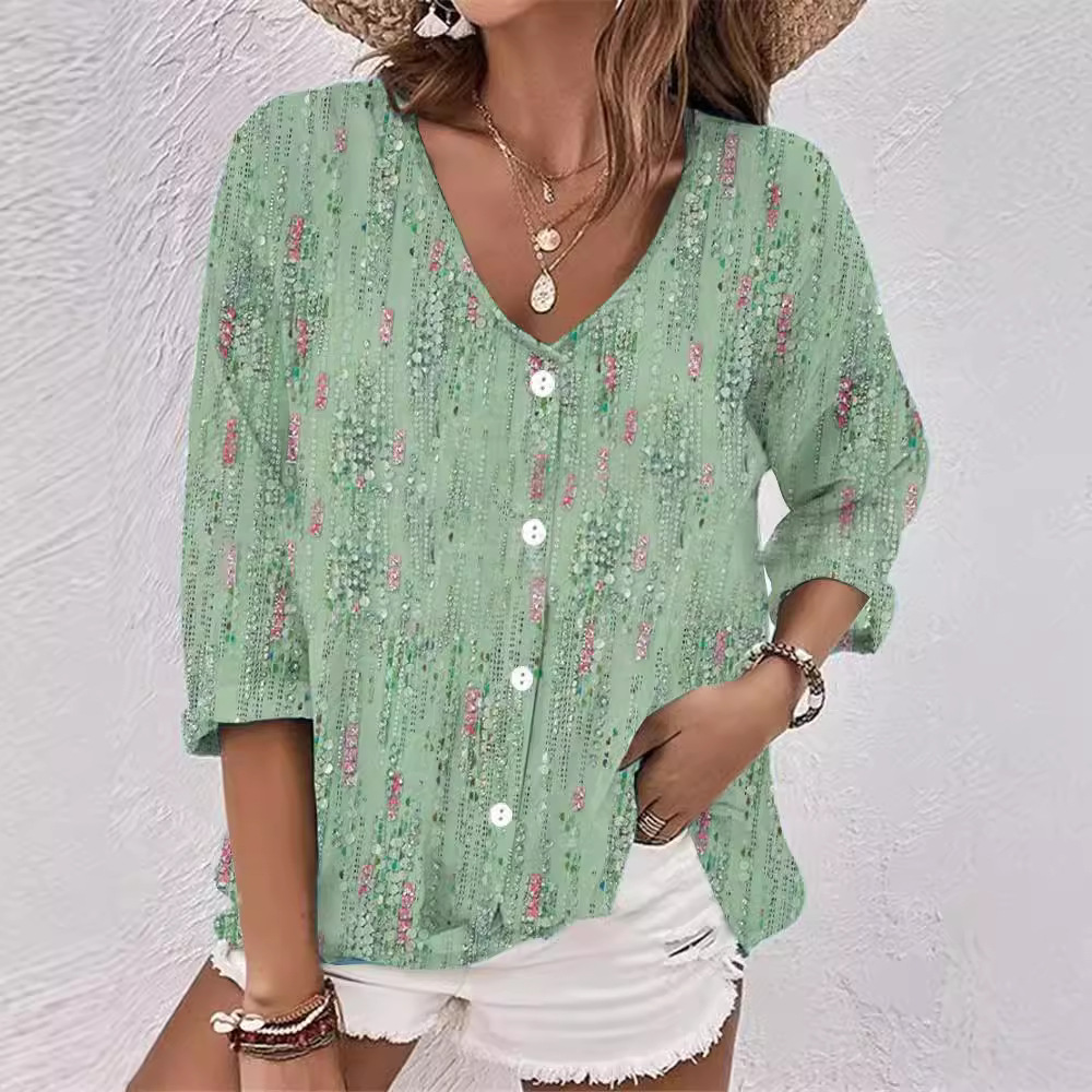 2023 осень и зима Новый европейский и американский Amazon TEMU независимая станция женский шифоновый кардиган с V-образным вырезом на пуговицах и принтом с длинным рукавом