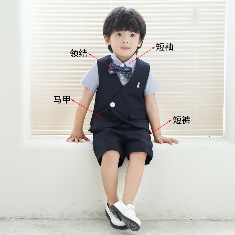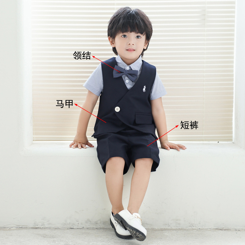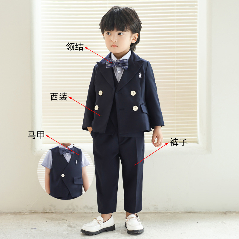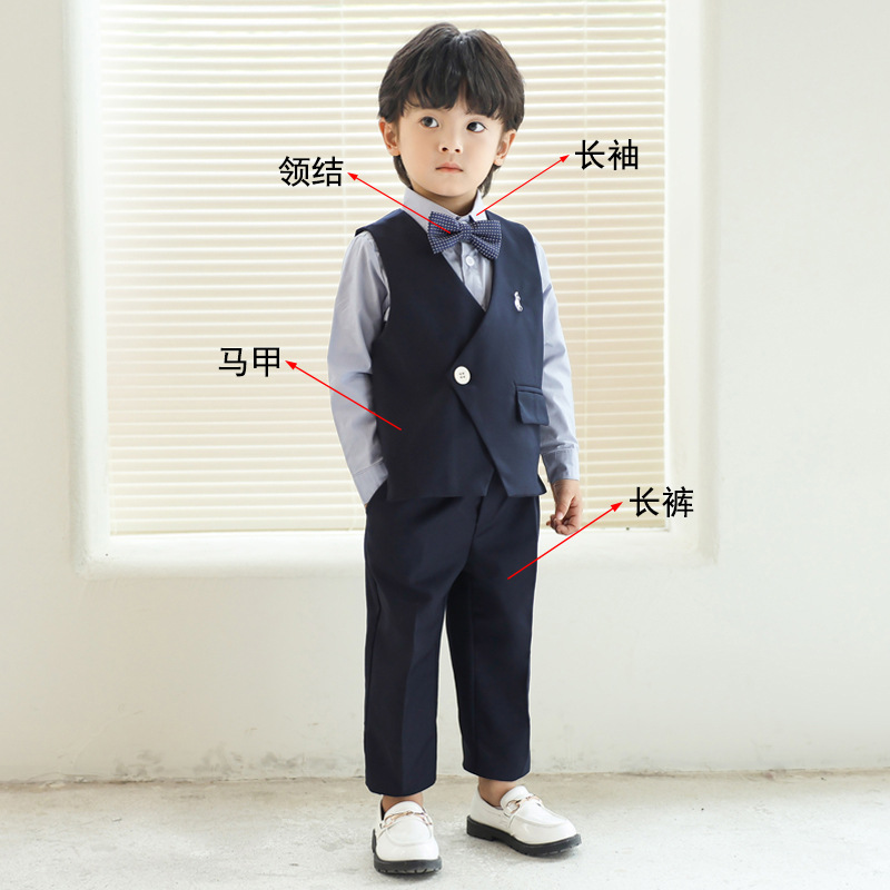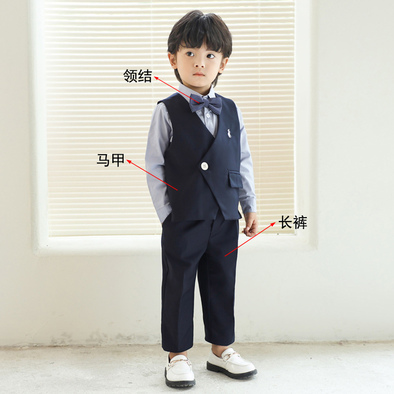 Детский костюм-костюм, детское свадебное платье с цветком для мальчиков, детское платье для фортепиано для детей одного года, жилет с вышивкой