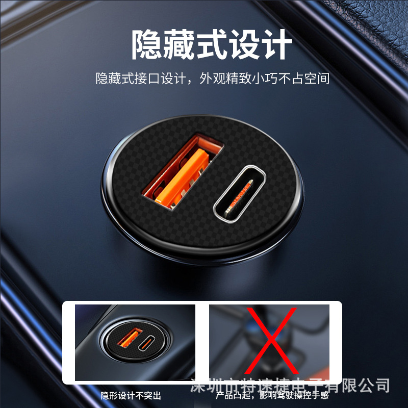 Подходит для автомобильного зарядного устройства Xiaomi Huawei, сверхбыстрая зарядка прикуривателя, двухпортовое невидимое мини-автомобильное зарядное устройство PD20W
