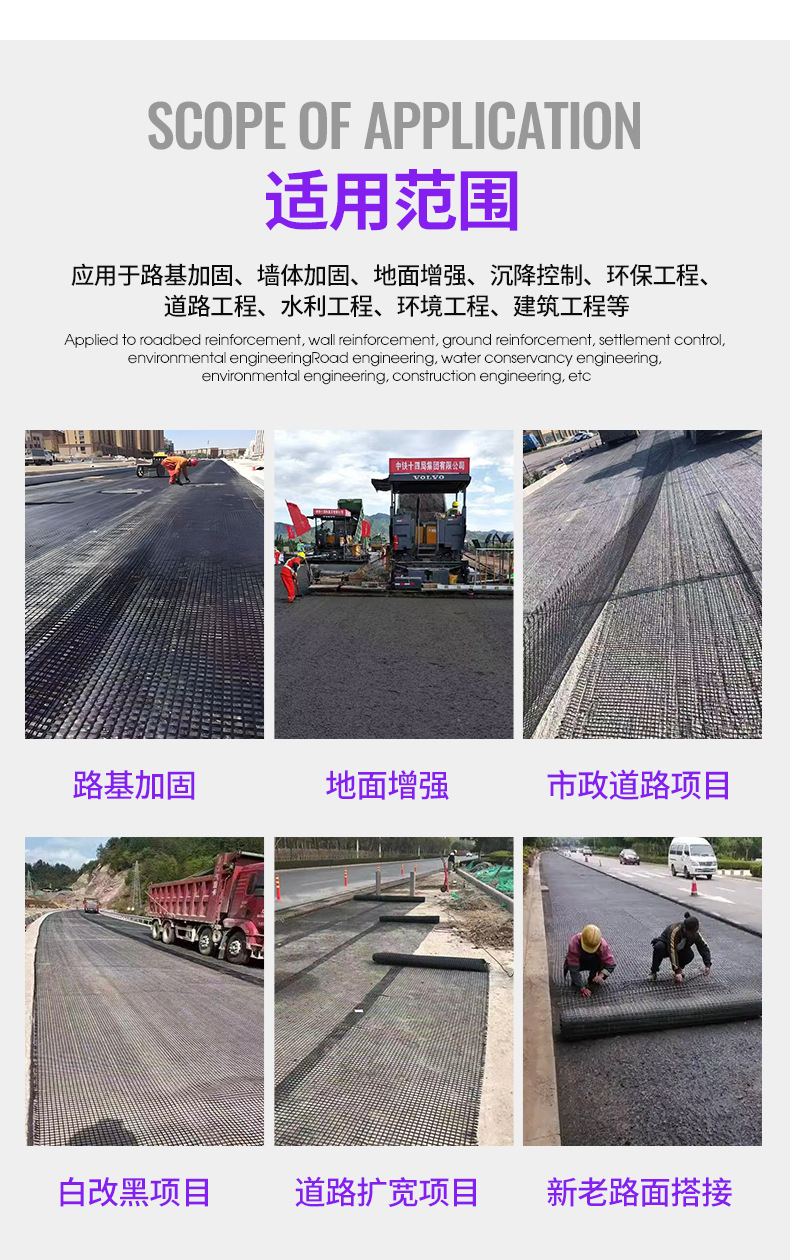 Стекловолоконная геосетка для асфальтовых покрытий, чернение дорожного полотна, армирование и укрепление дорог стекловолоконной сеткой
