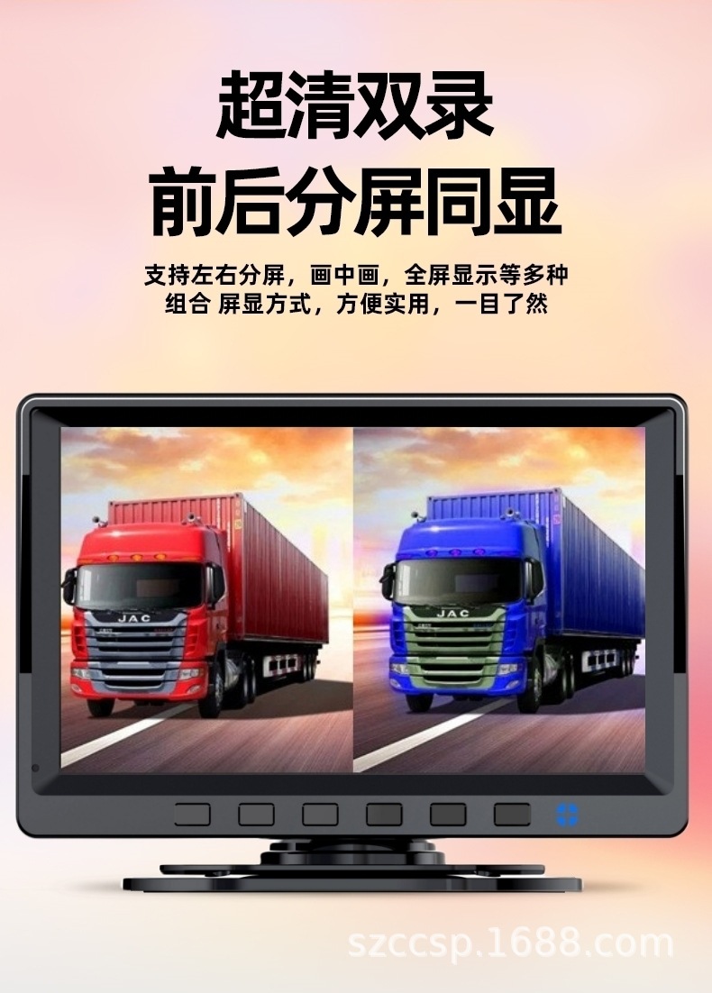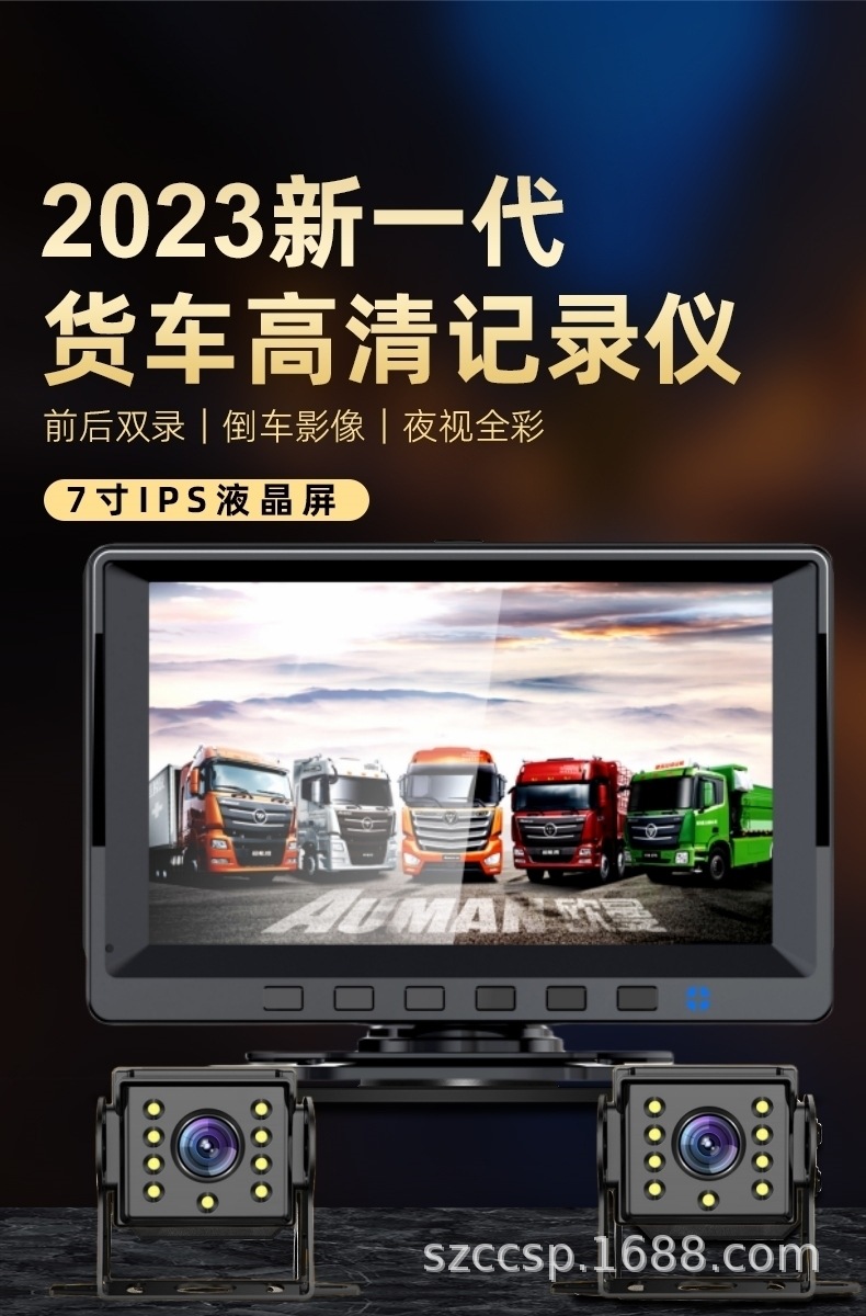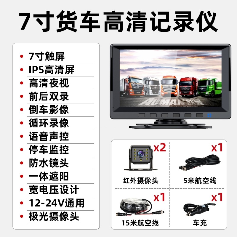 Видеорегистратор 12В-24В с двойной записью (фронтальная и задняя) высокого разрешения для легковых и строительных автомобилей с функцией отображения изображения при движении задним ходом