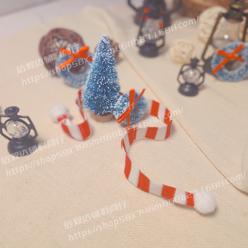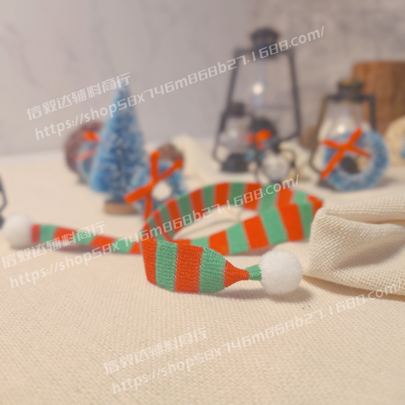 Рождественский мини-шарф Тканый маленький шарф Красный Белый Красный Зеленая полоса Маленький шарф Бутылка вина Кукла Напиток Кубок Украшения