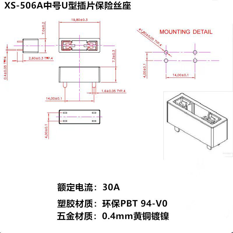 XS-506A средний держатель предохранителя U-образной вставки