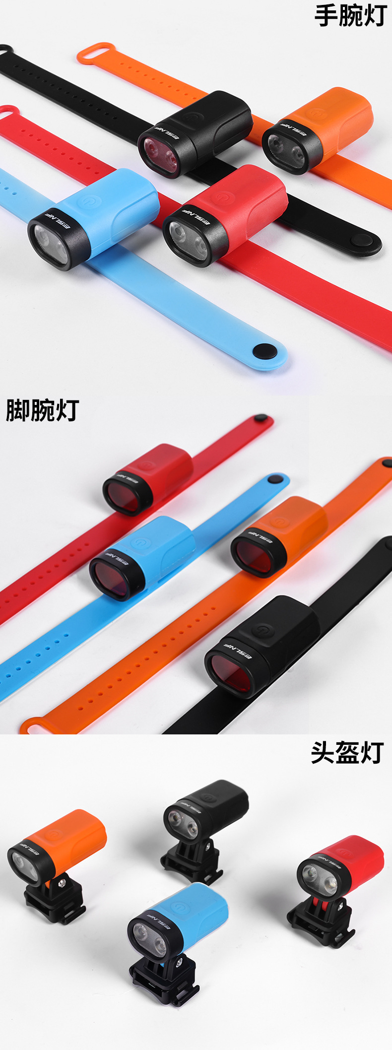 Фонарь на запястье-оранжевый; Запястье лампа-синий; Фонарь на запястье-черный; Фонарь на запястье-красный; Лампа на шлеме-оранжевый; Лампа на шлеме-синий; Лампа на шлеме-черный; Лампа на шлеме-красный; Фонарь на лодыжке-оранжевый; Фонарь на лодыжке-синий; Фонарь на лодыжке-черный; Фонарь на лодыжке-красный; Три в одном-оранжевый; Три в одном-синий; Набор «три в одном»-черный [запястье шлем фонарь на лодыжке]; Три в одном-красный
