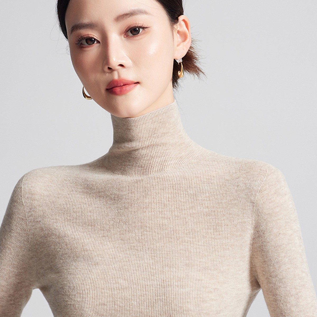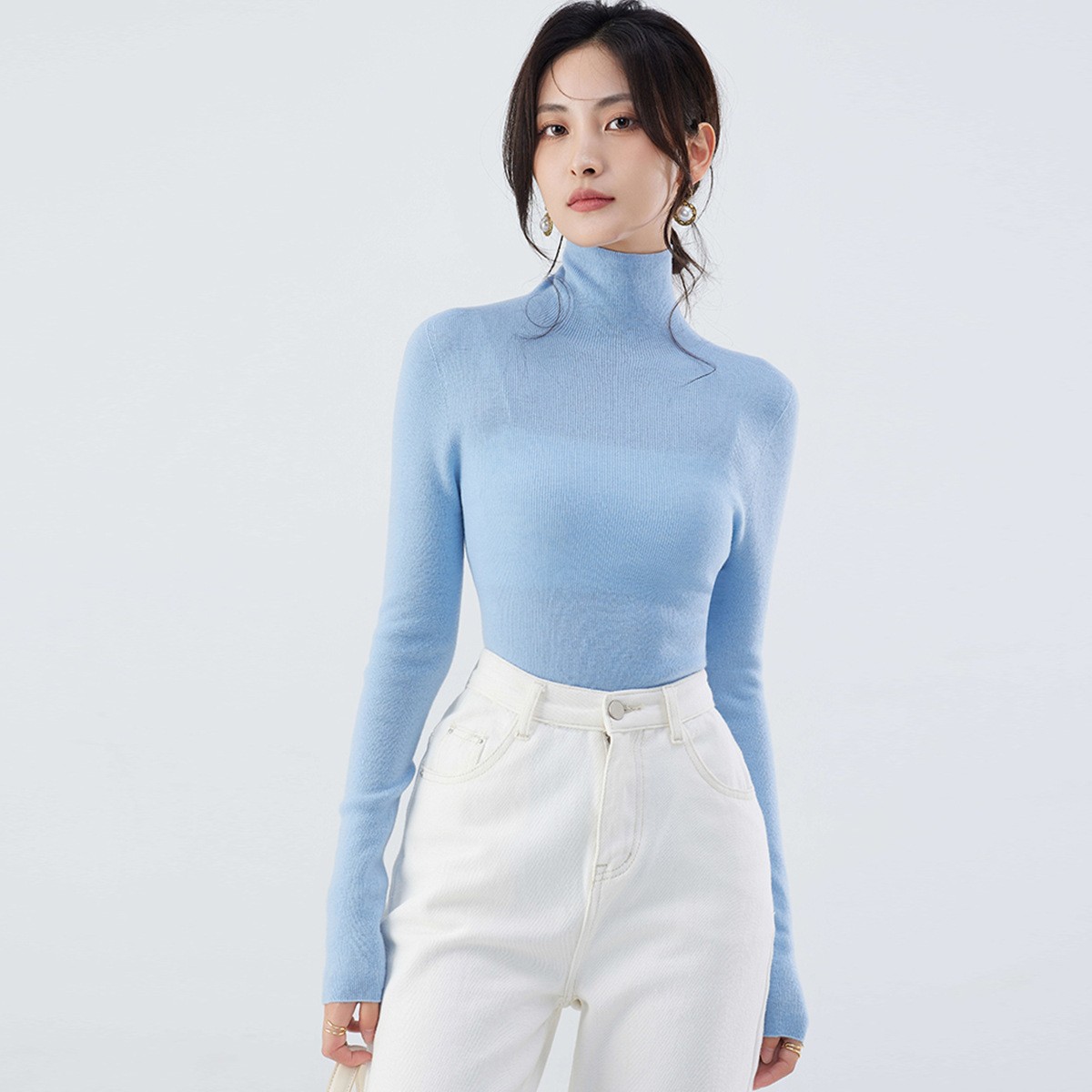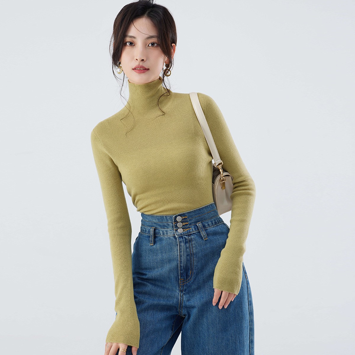 Женский свитер с воротником-стойкой, машинная стирка, бесшовный, 100% чистая шерсть, тонкий трикотаж, базовая модель для ранней осени, женская одежда