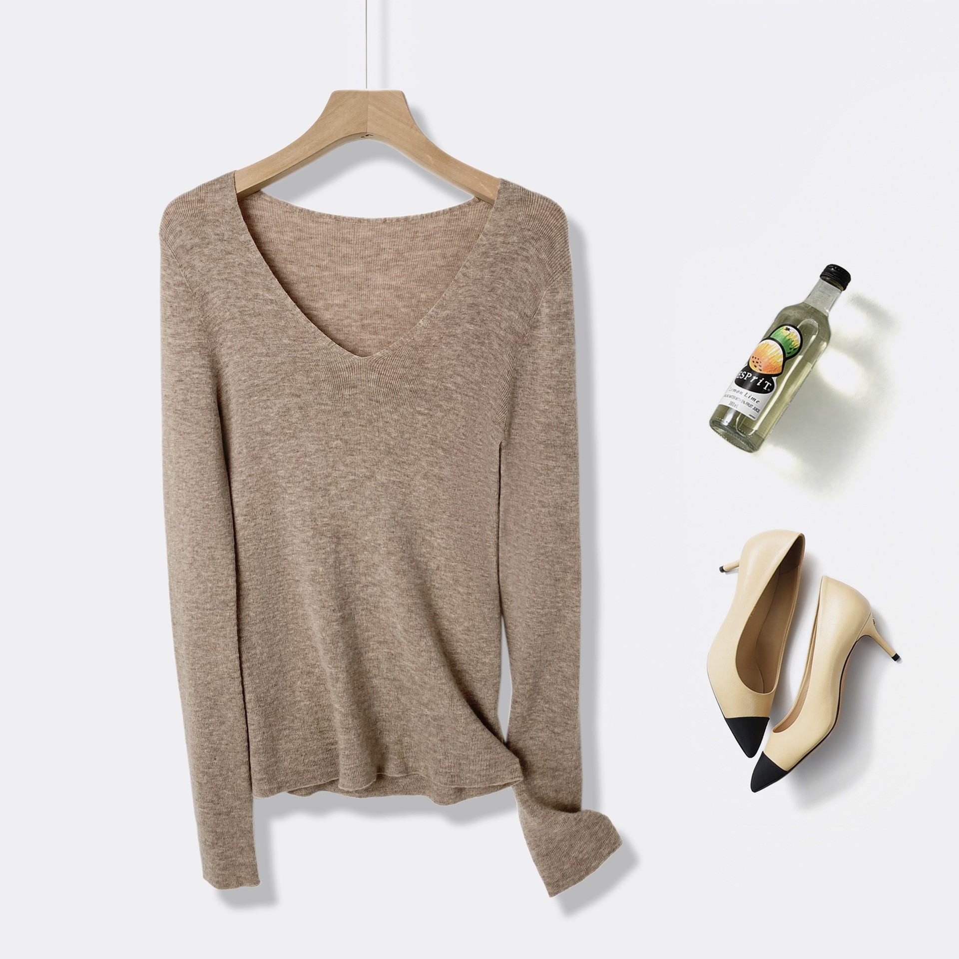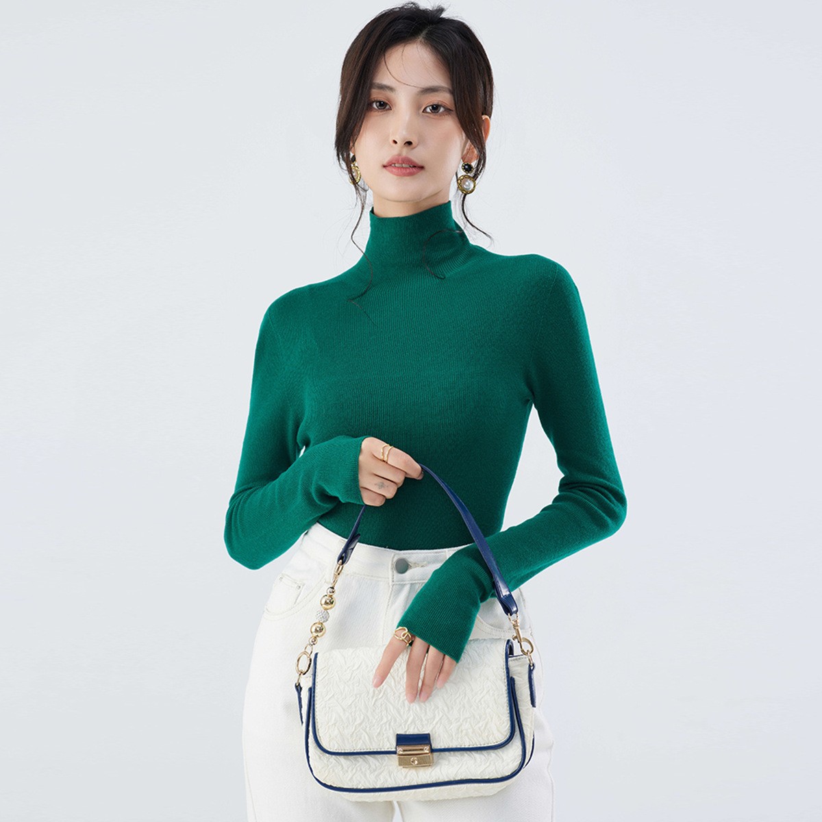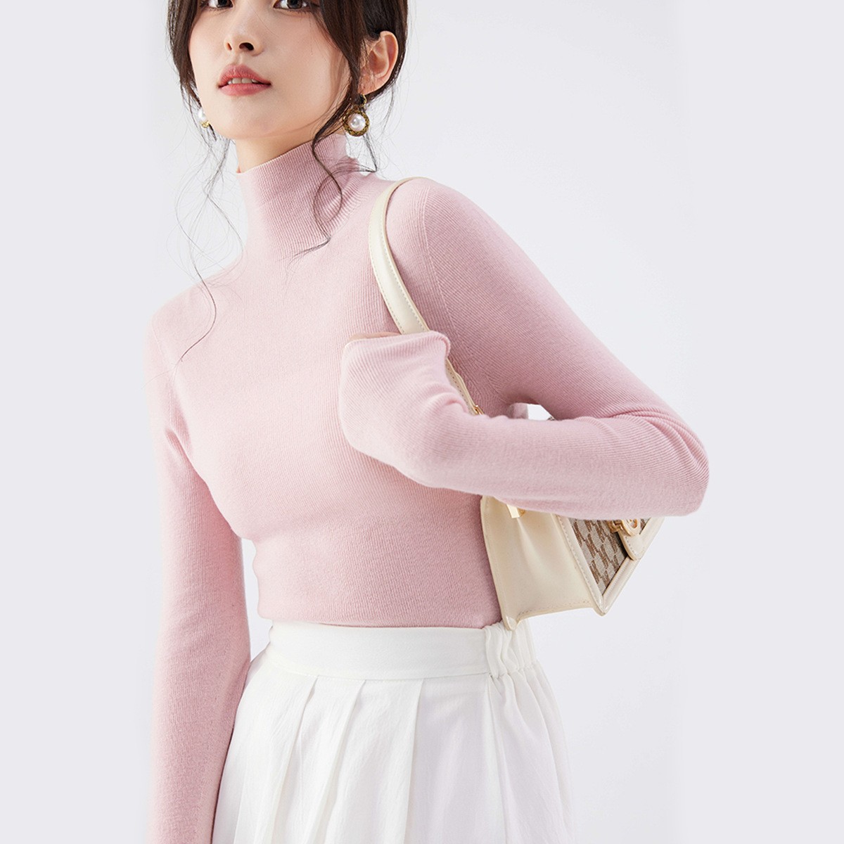 Женский свитер с воротником-стойкой, машинная стирка, бесшовный, 100% чистая шерсть, тонкий трикотаж, базовая модель для ранней осени, женская одежда