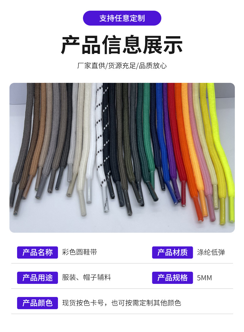 Ремешки для обуви, тесьма для поясов, шнурки для спортивных штанов и толстовок, полиэстер, низкоэластичный, 32-прядный, плотное плетение, 5 мм